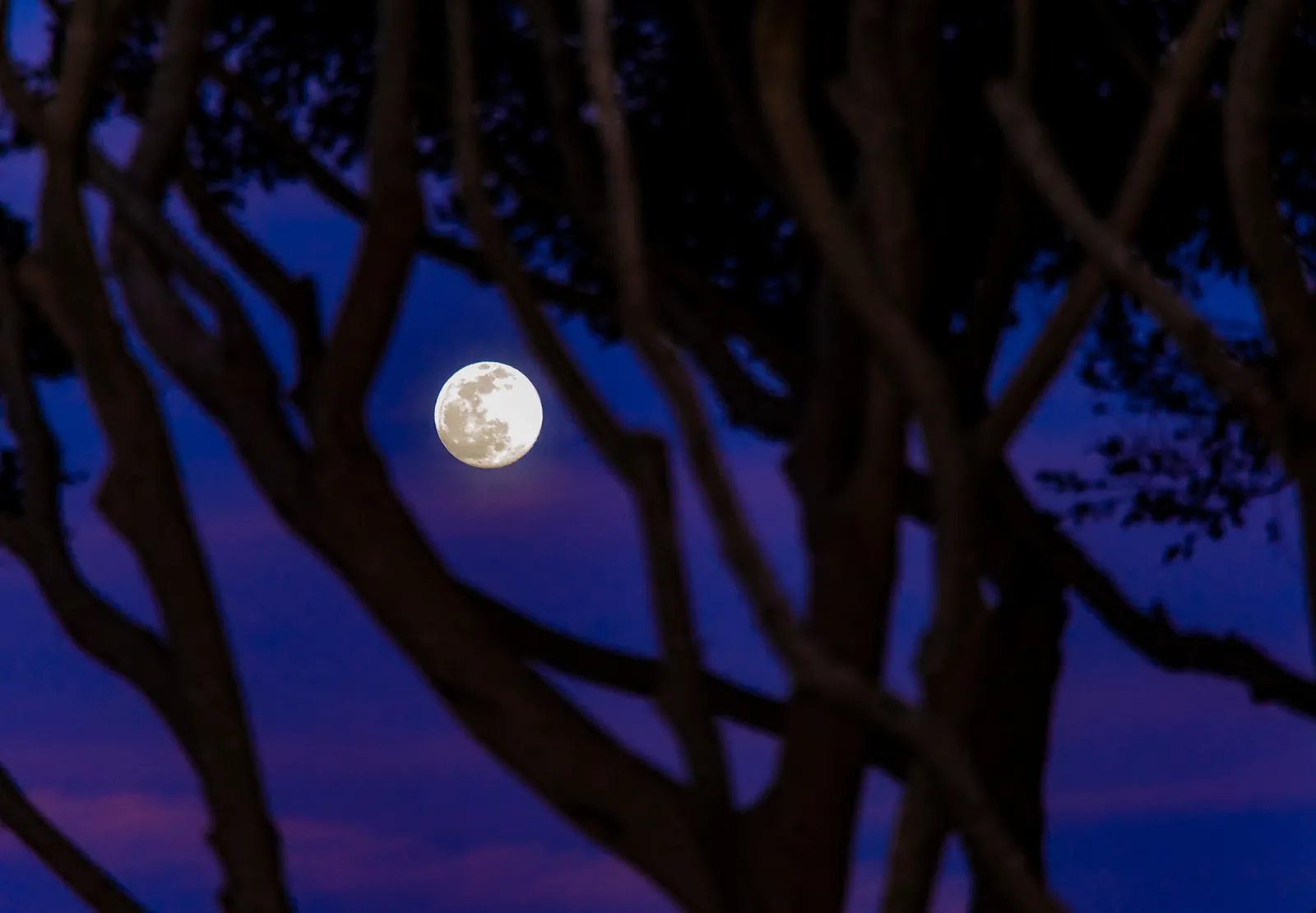 The first full moon in January of the new year is also known as the wolf moon, named after howling wolves. This image was actually made one day before the full wolf moon at the tail end of the blue hour on the west coast.