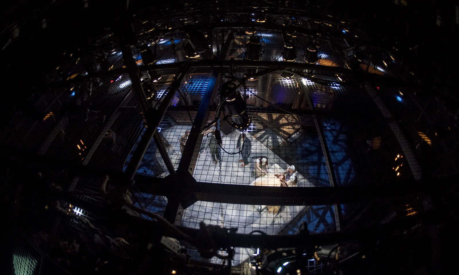 Shot from the grid above a performance of The Crucible. I think had waffle shaped imprints for a day after laying on the cable through the performance.