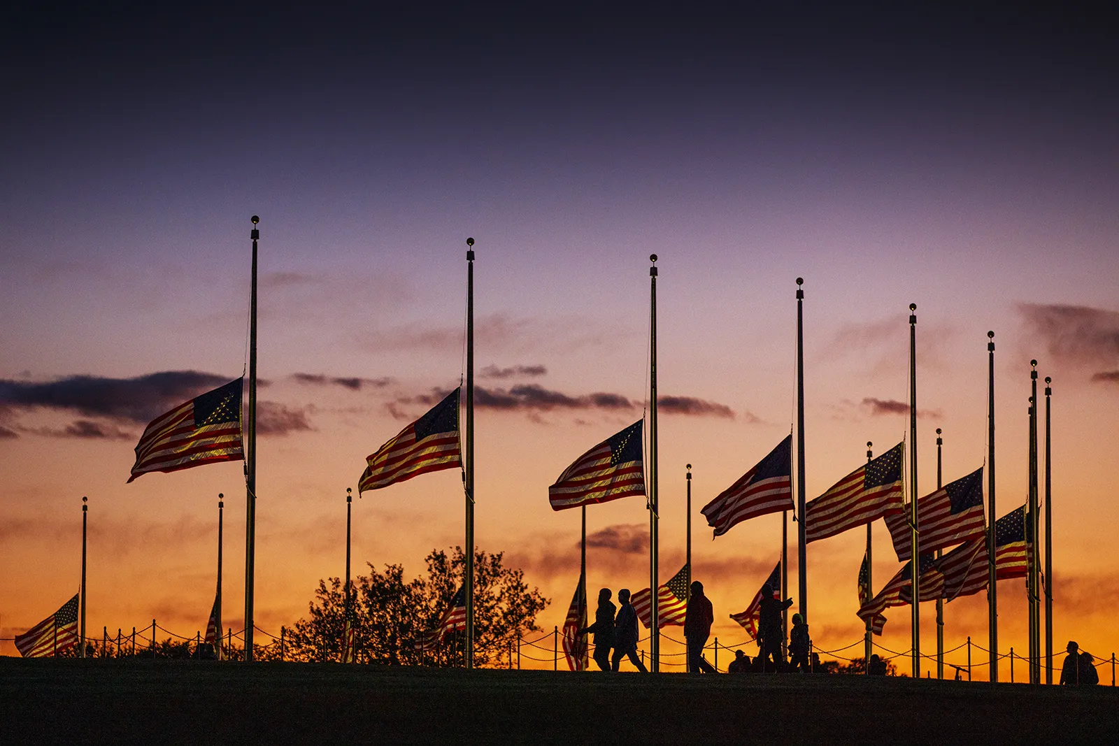 Flags outside the Washington Monument fly at half staff to honor Maryland Congressman Elijah Cumming who died October 17.