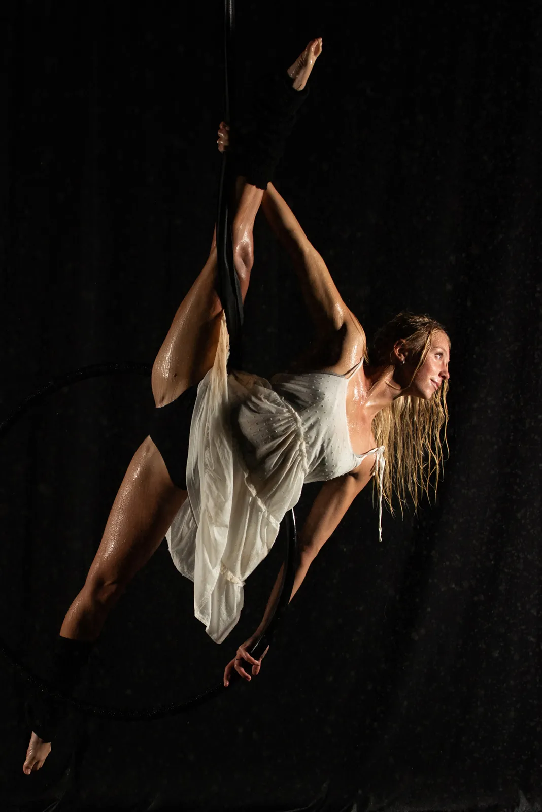 A black backdrop was set up, two lights and a sprinkler head was set up on the top of the rig to get a raining effect.