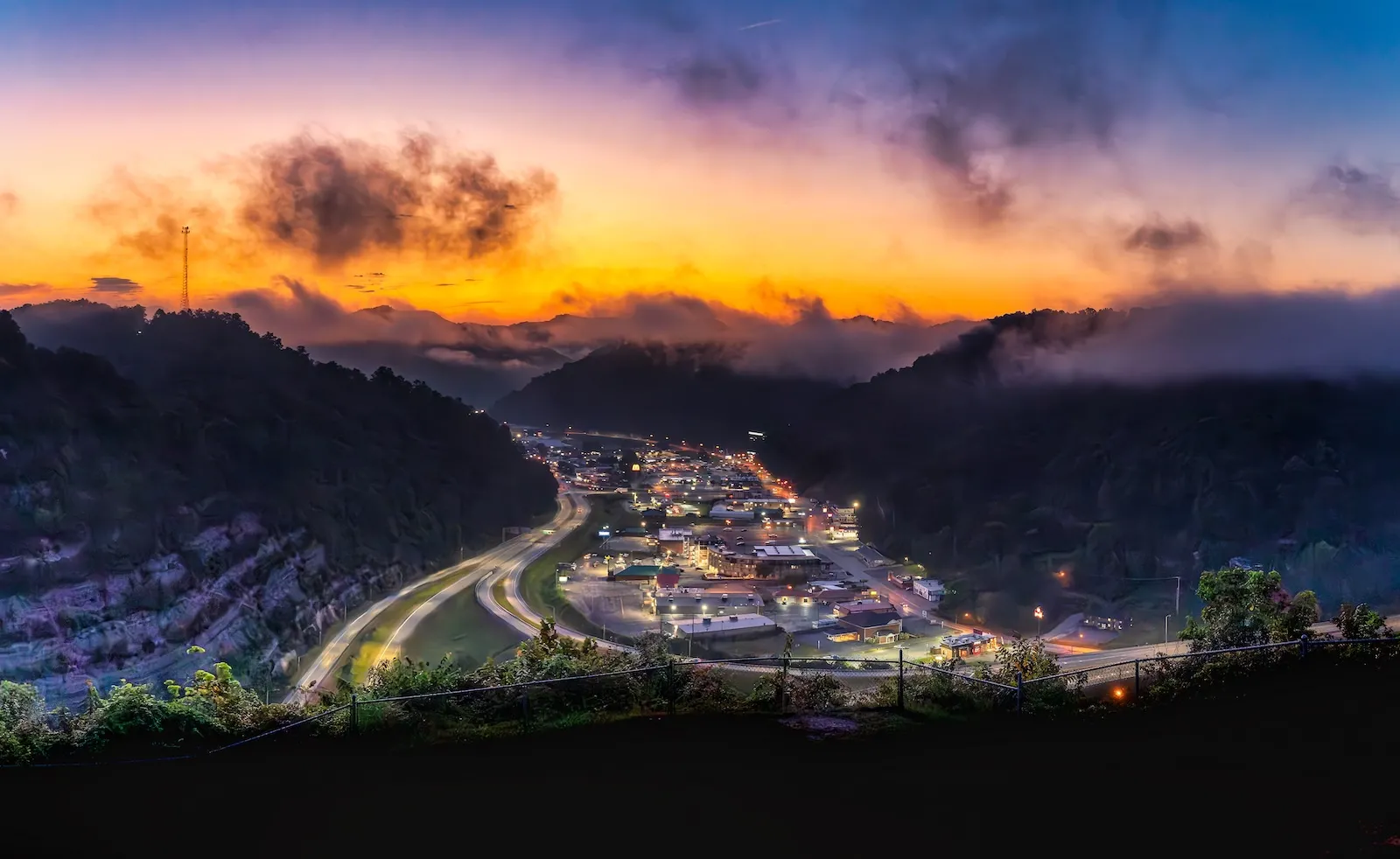 Sunrise stitched panorama of downtown Pikeville, home of the University of Pikeville