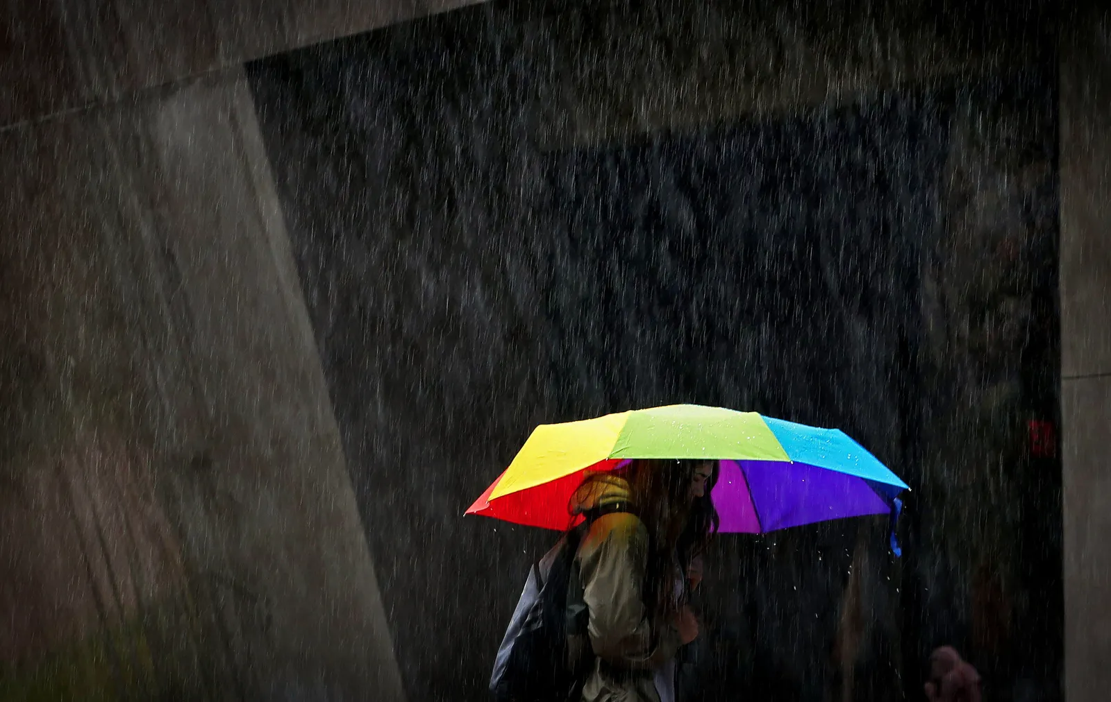 A student carries an umbrella in the rain as she walks past the Arts Building on Thursday, Feb. 14, 2019 at UCR.