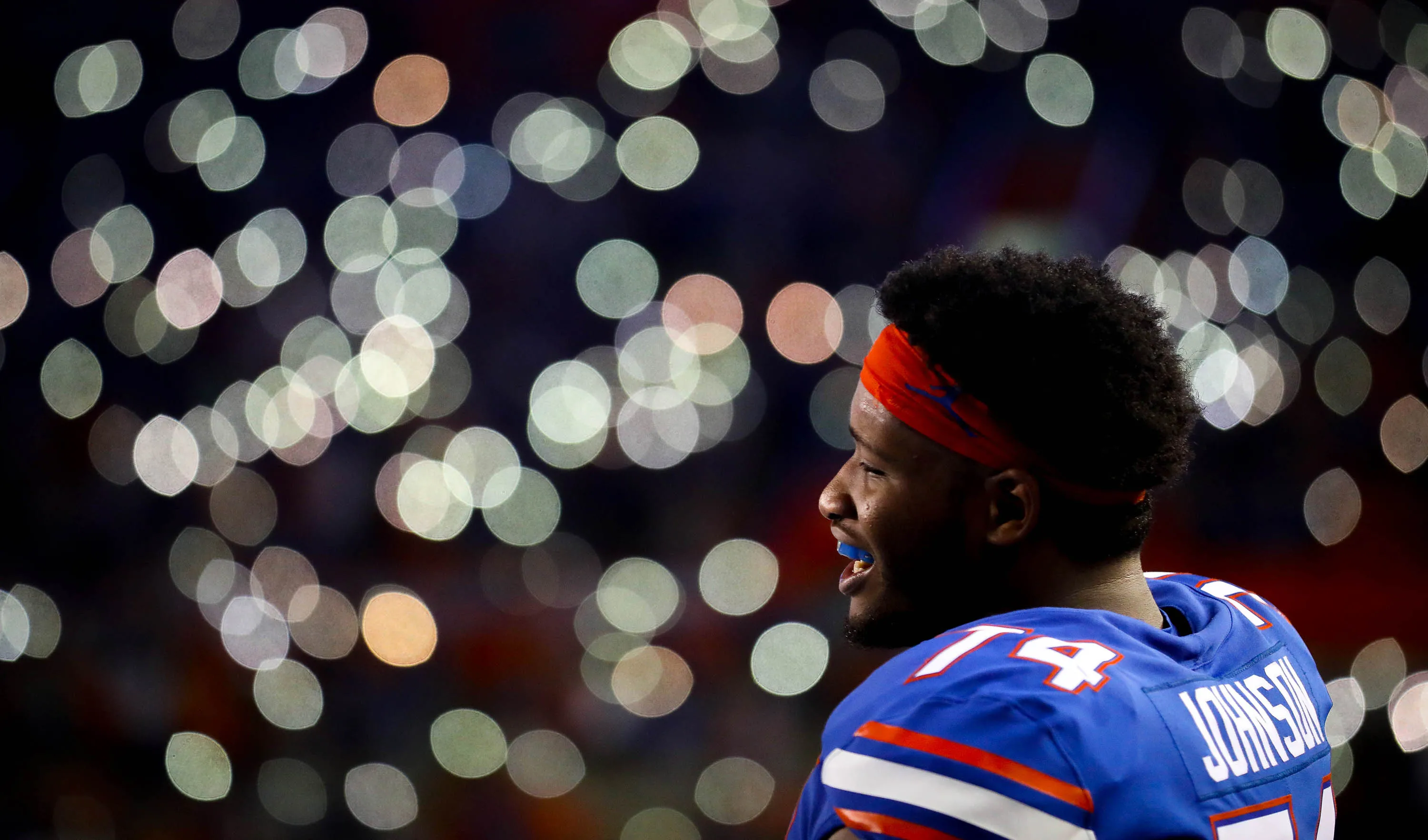 Florida Gators offensive lineman Fred Johnson (74) during the Tom Petty Tribute I won't back down during the Gators' game against the Charleston Southern Buccaneers on Saturday, September 1, 2018 at Ben Hill Griffin Stadium in Gainesville, Fla.