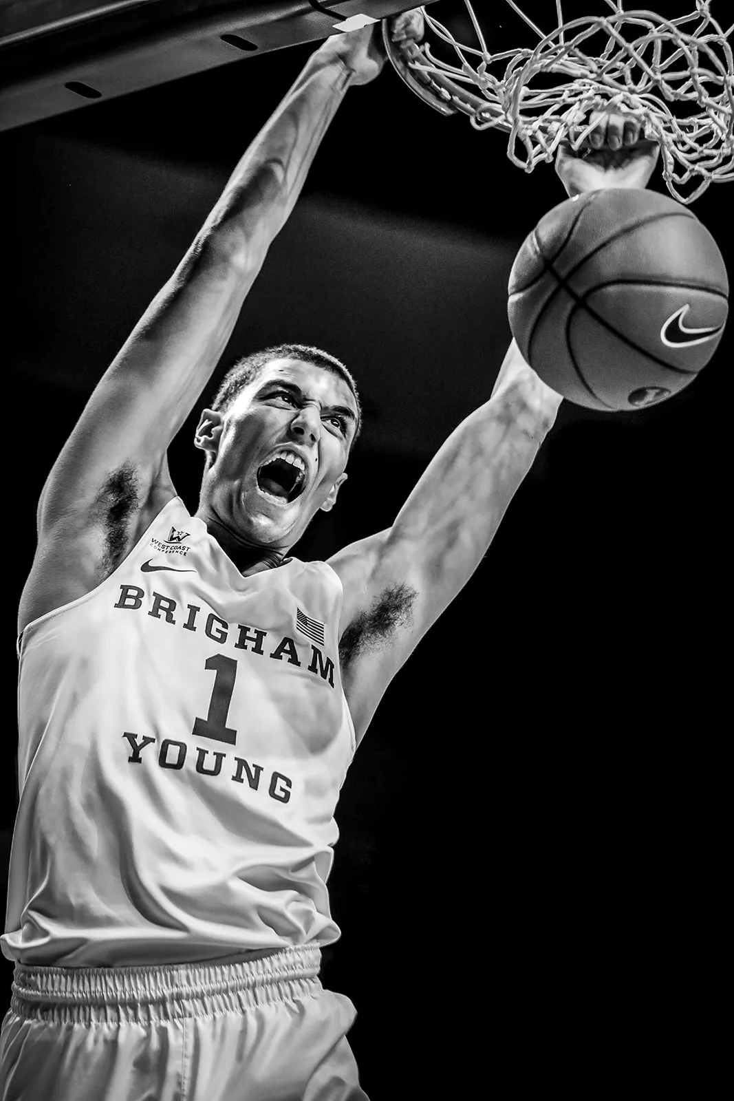 BYU Basketball player Rylan Bergersen slams an epic dunk at the first basketball game I've ever photographed.