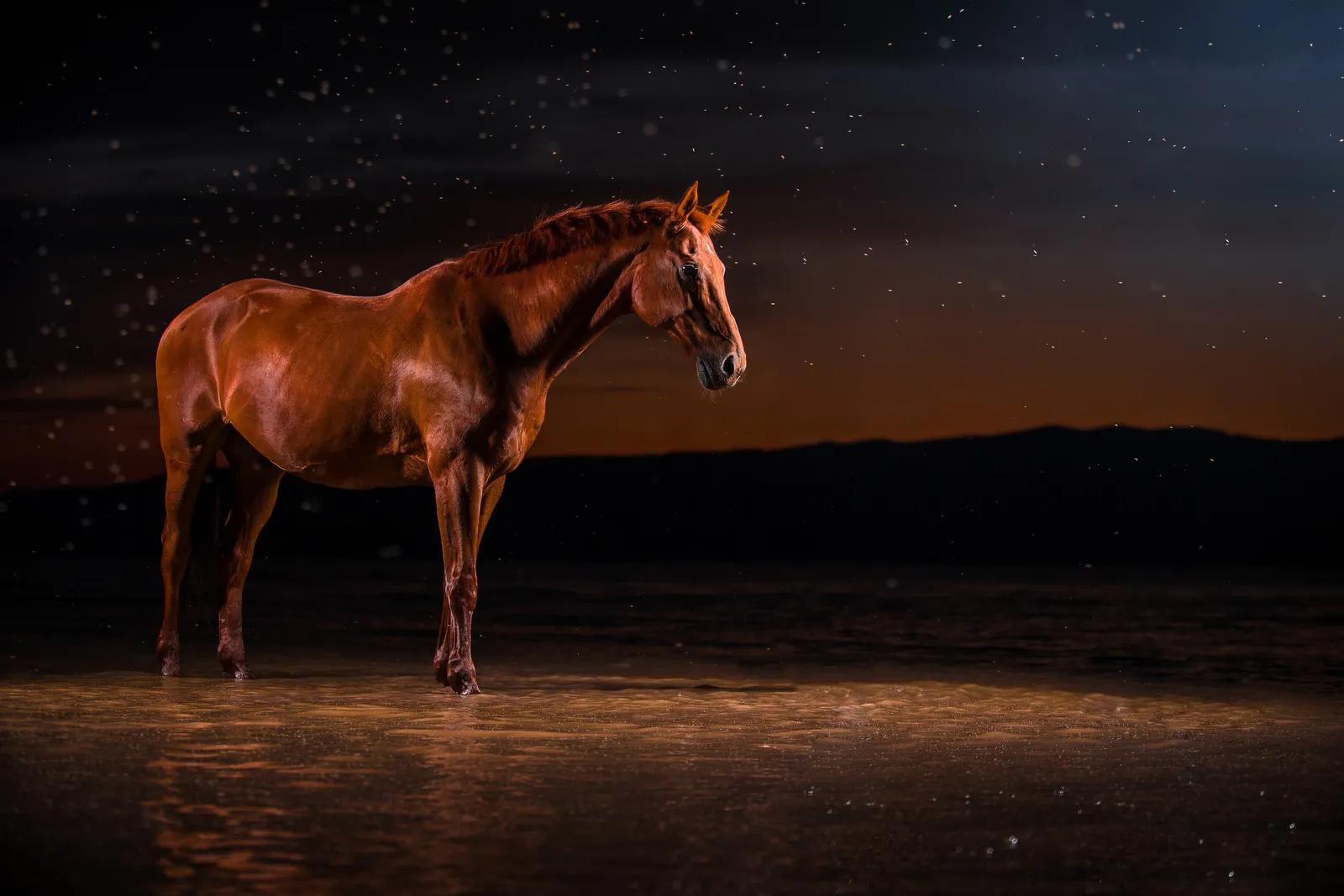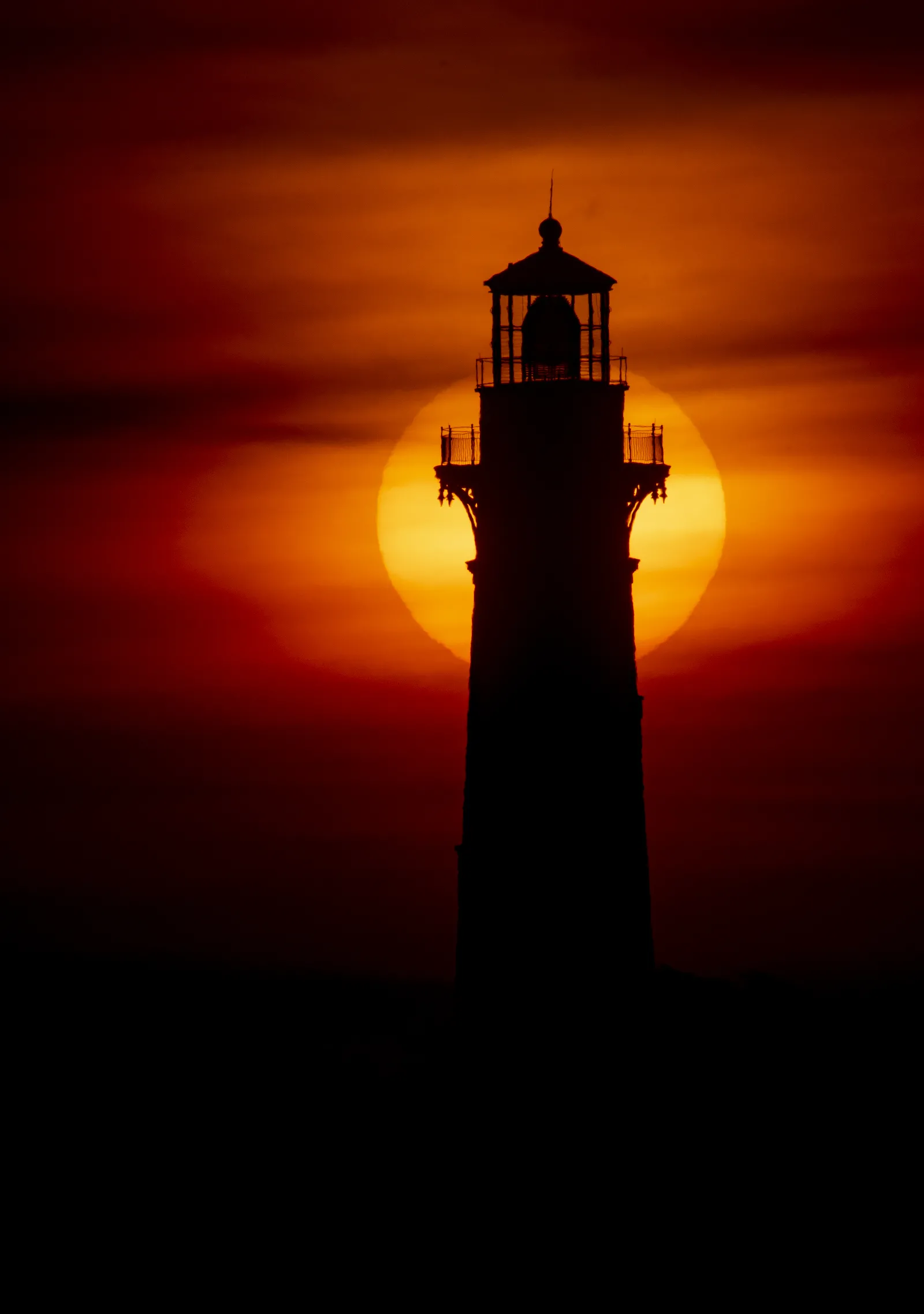 Day changes into night as the Bodie Island light takes over from the sun.