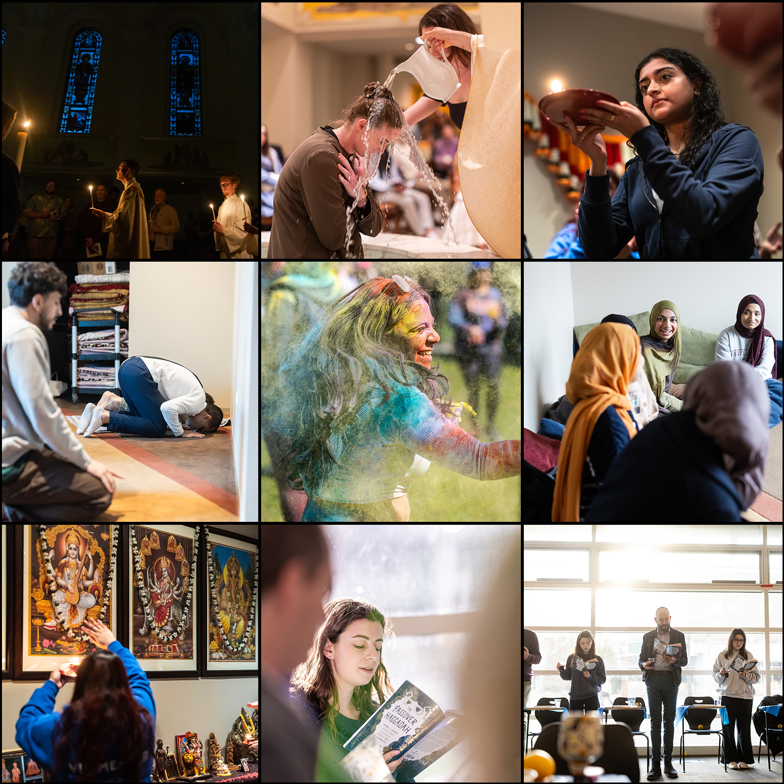 This photo essay explores how Loyola’s Campus Ministry cultivates a vibrant, inclusive spiritual environment through chaplain-led counseling, dedicated prayer spaces for five major faith traditions, regular worship services, and interfaith retreats and programming.