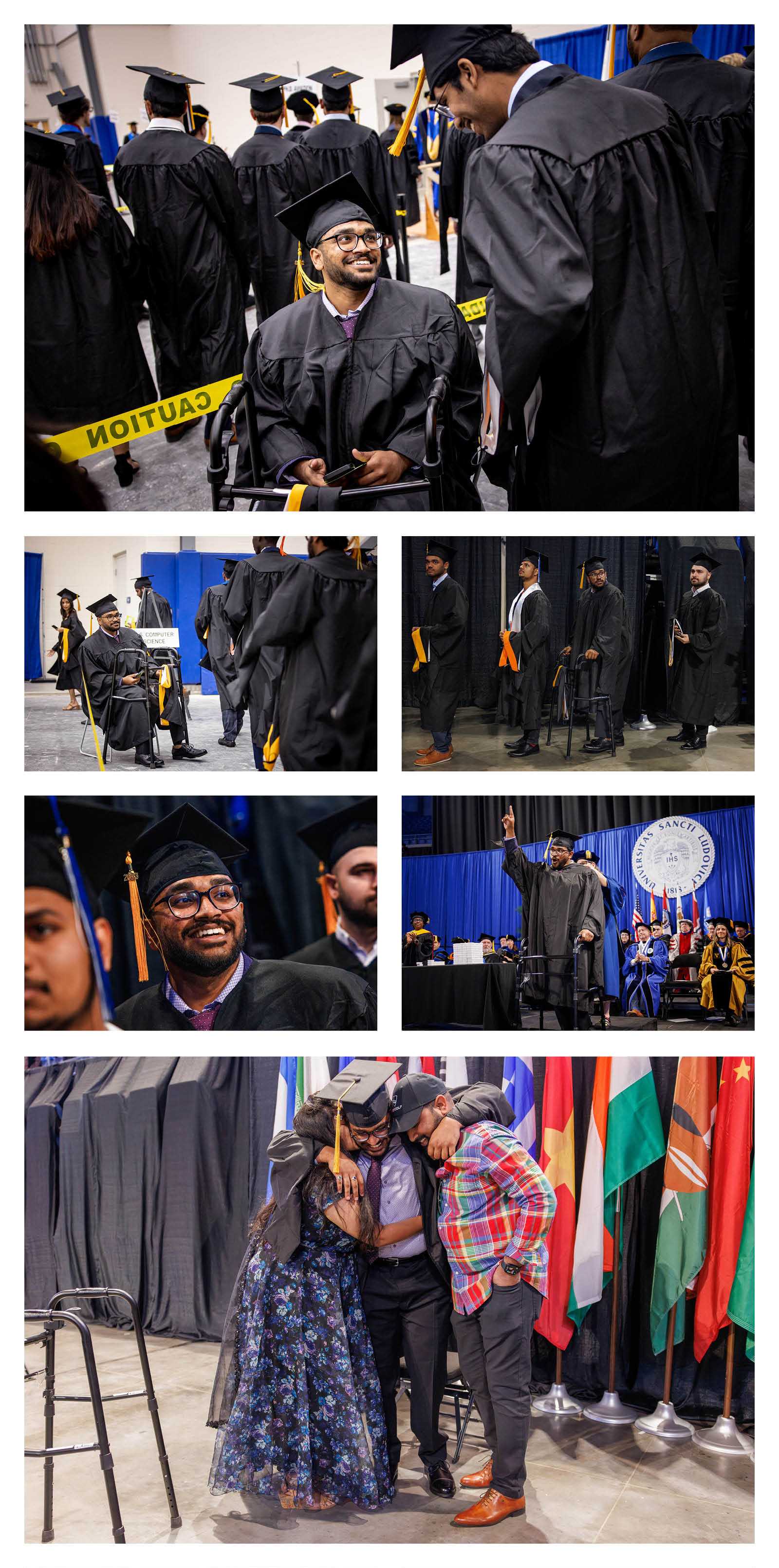 On January 24, 2022, Computer Science student Aniketh Vyas and his friends went out to celebrate his birthday. They were riding in a Lyft when the driver fell asleep on the highway and crashed into the guardrail. Miraculously, no one was injured. But as they talked with police on the side of the road, they were struck by a speeding vehicle at 97mph. Vyas suffered critical injuries that resulted in the amputation of his left leg. Recently he received his prosthetic and on May 19, 2023 he walked across the stage to receive his diploma.