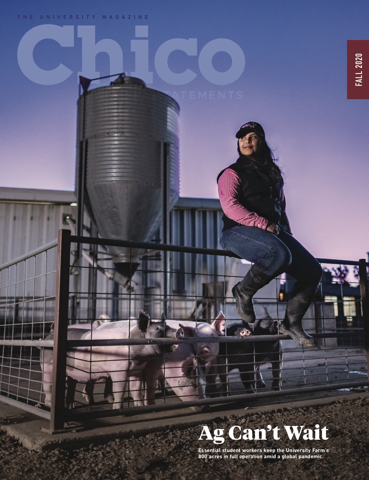 Chico Statements magazine is published twice a year and mailed to alumni, parents, and friends of CSU, Chico. Chico Statements magazine stories strive to showcase excellence and human interest features that highlight the campus community. This can focus on students, staff, faculty or alumni who are deserving of special recognition. The fall 2020 issue featured a main story about essential work students conducted at the University Farm, alumni highlights from our student legal organization. The magazine uses very visual friendly design with the use of large photo spreads.