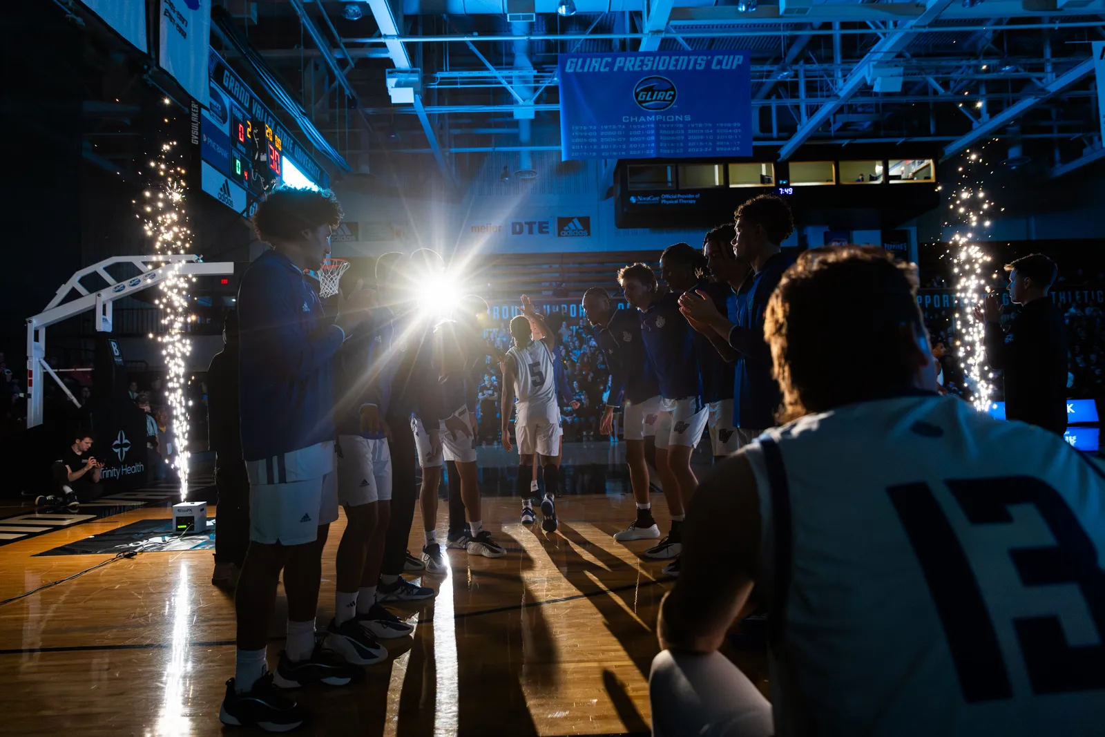 Grand Valley State guard Trevor Smith Jr. is introduced before a rivalry matchup against Ferris State at the GVSU Fieldhouse Arena in Allendale, Michigan.