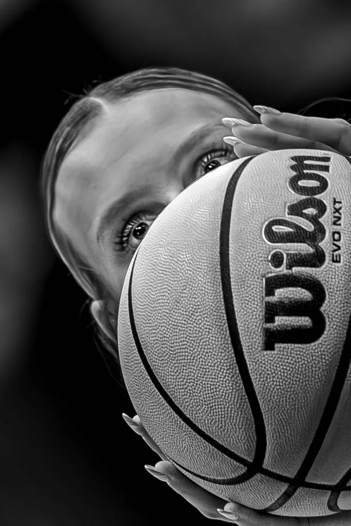 Grand Valley State University women's basketball player lines up her free throw shot, nails and all, against rivals Ferris State University.