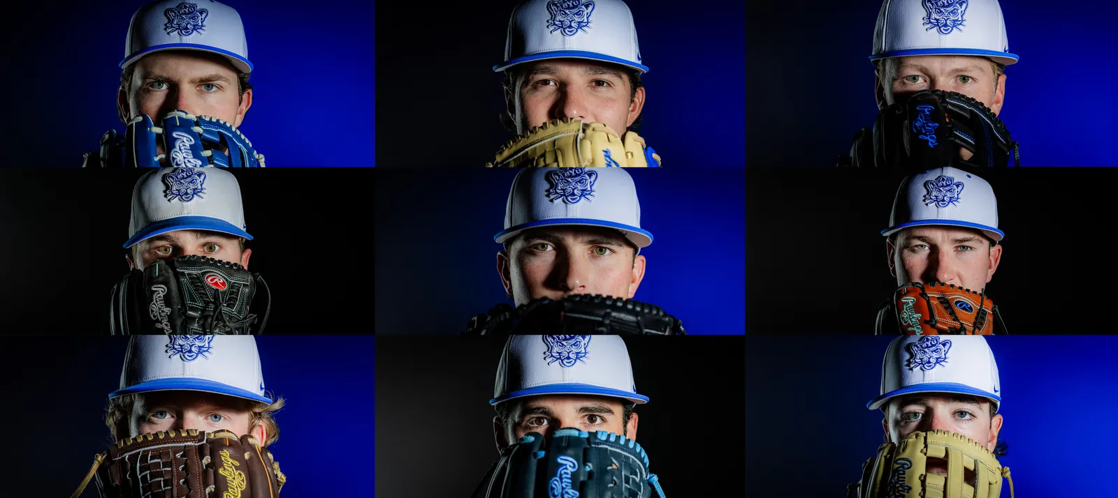 A composite of all our pitchers behind their gloves. Composited in photoshop.