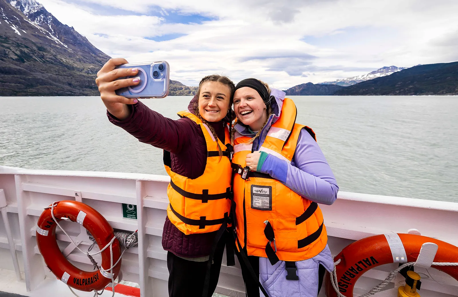 Photo of students enjoying their experiential learning trip visiting the Glacier at Lago Grey.