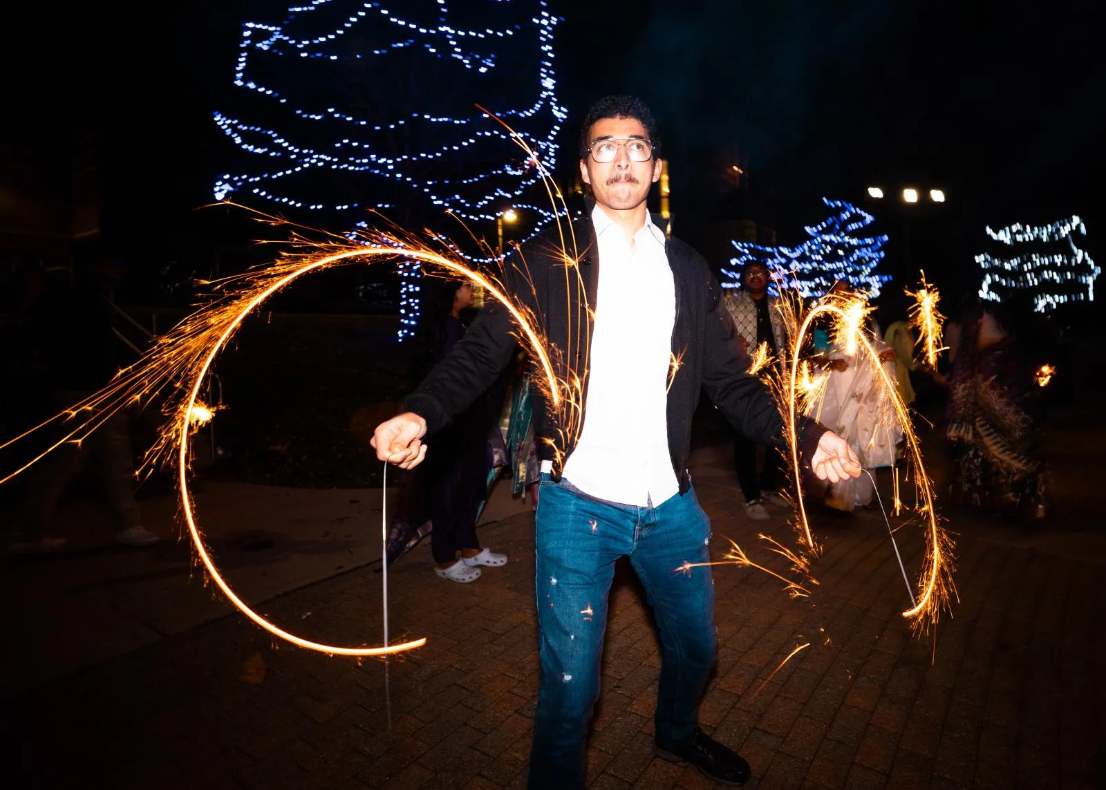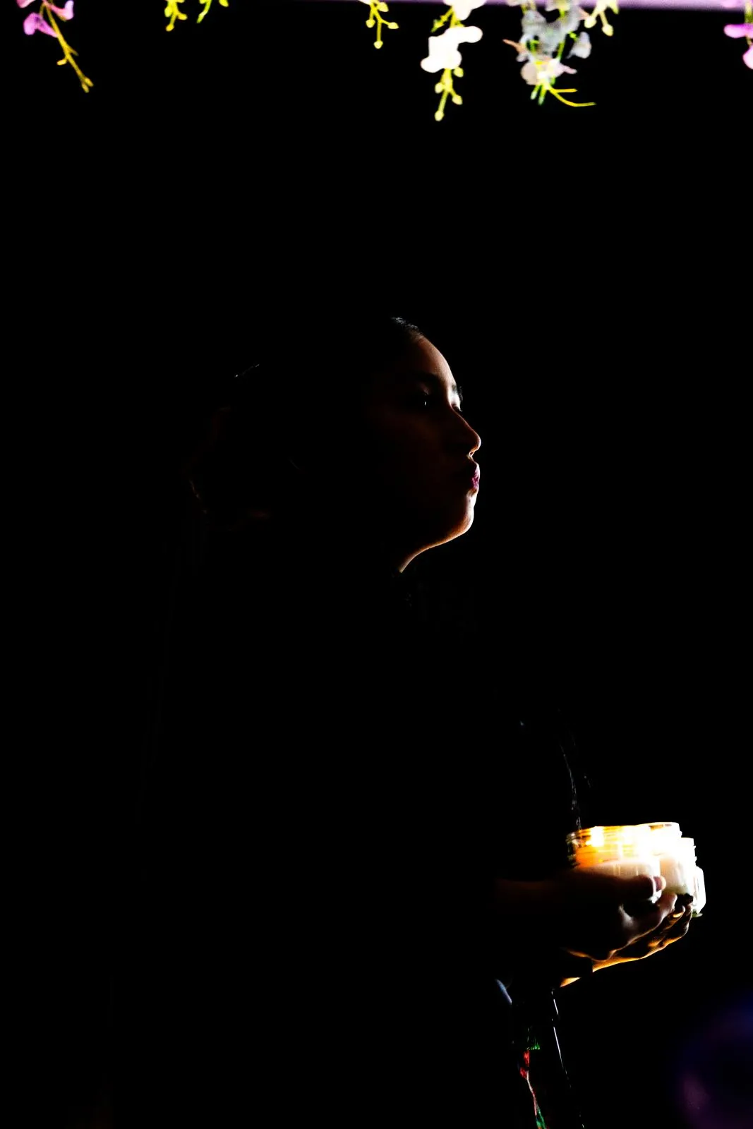 A dancer holds candles during a performance at this years Global Gala at GVSU