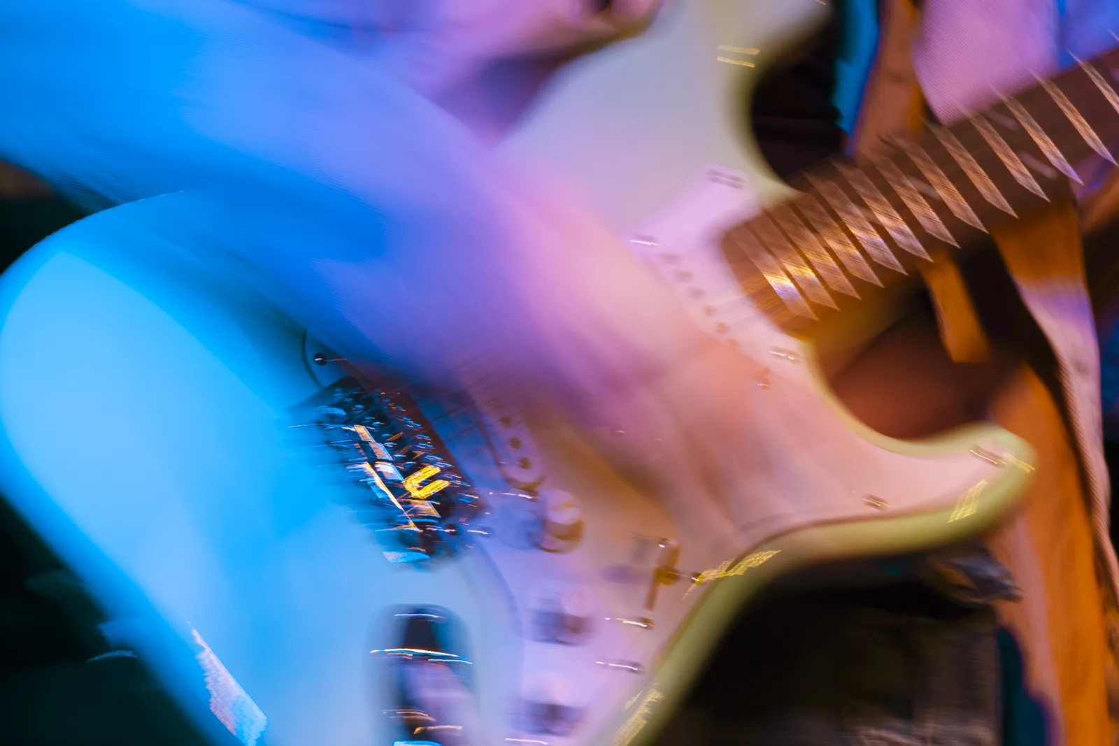 A student strums his guitar while performing at ACM@UCO Alive, December 2025.