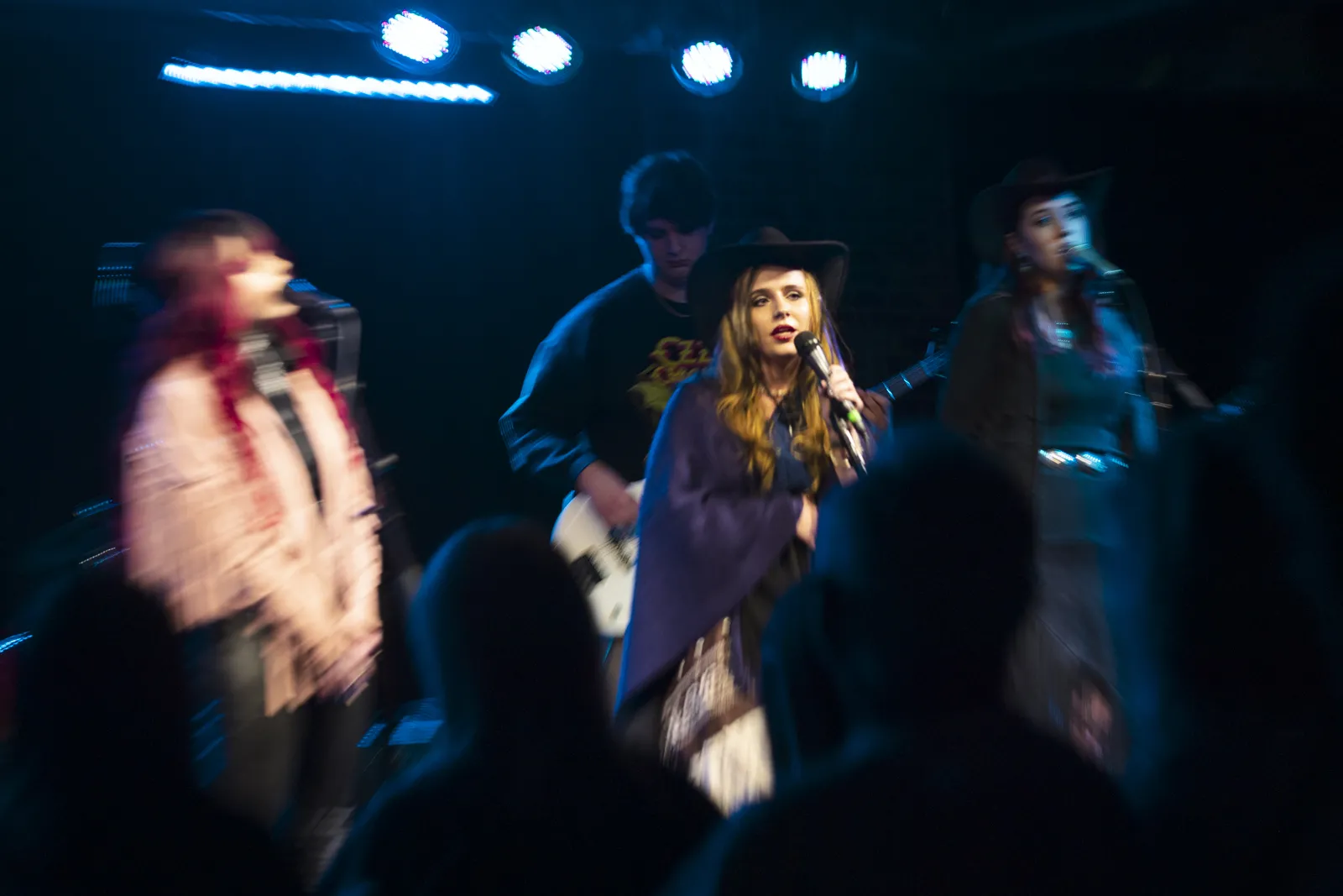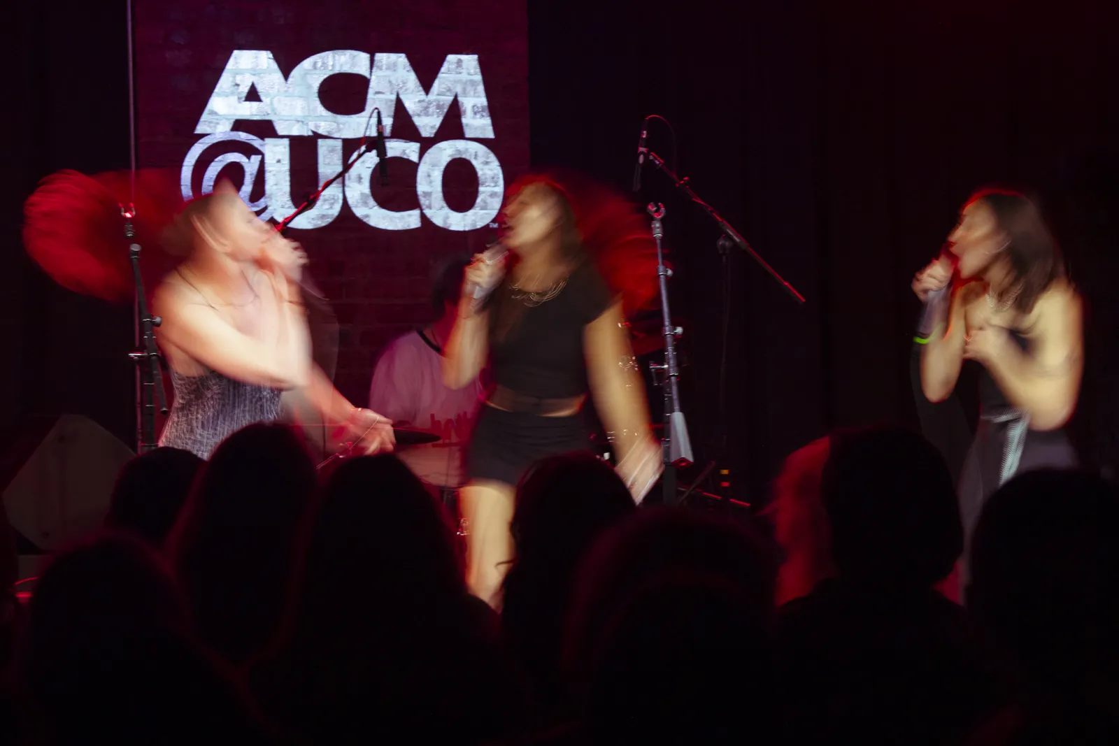 Band members sing together on stage at ACM@UCO Alive, December 2025.