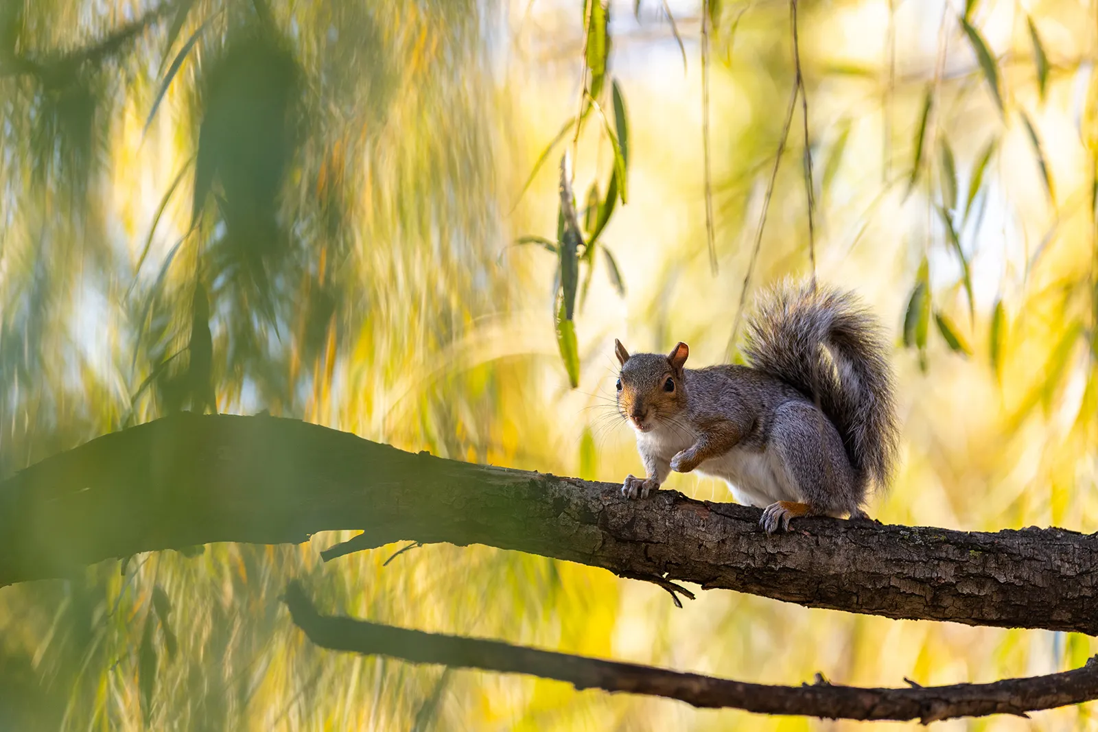 A squirrel sits on a branch homecoming morning at the University of Maryland on Nov. 1, 2025.