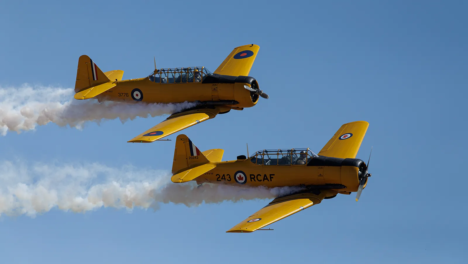 WWII planes raced across the sky in an airshow, panning with them to capture this moment.