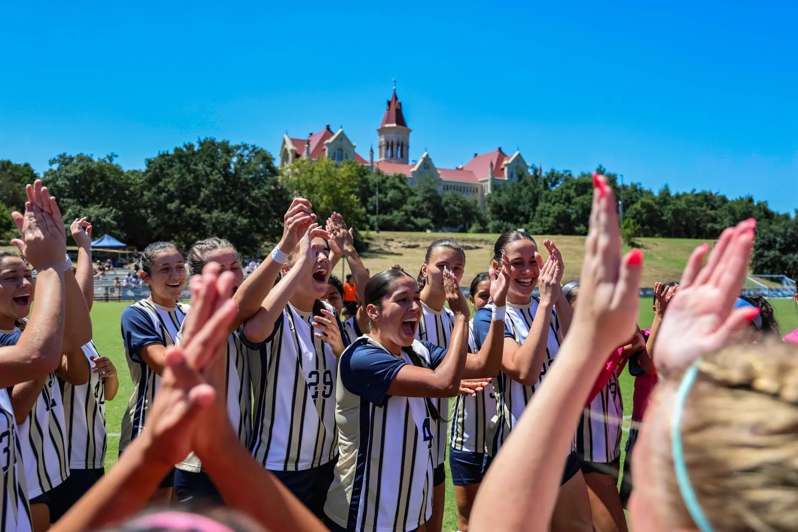 St. Edward's University Women's Soccer preparing for the start of the game.