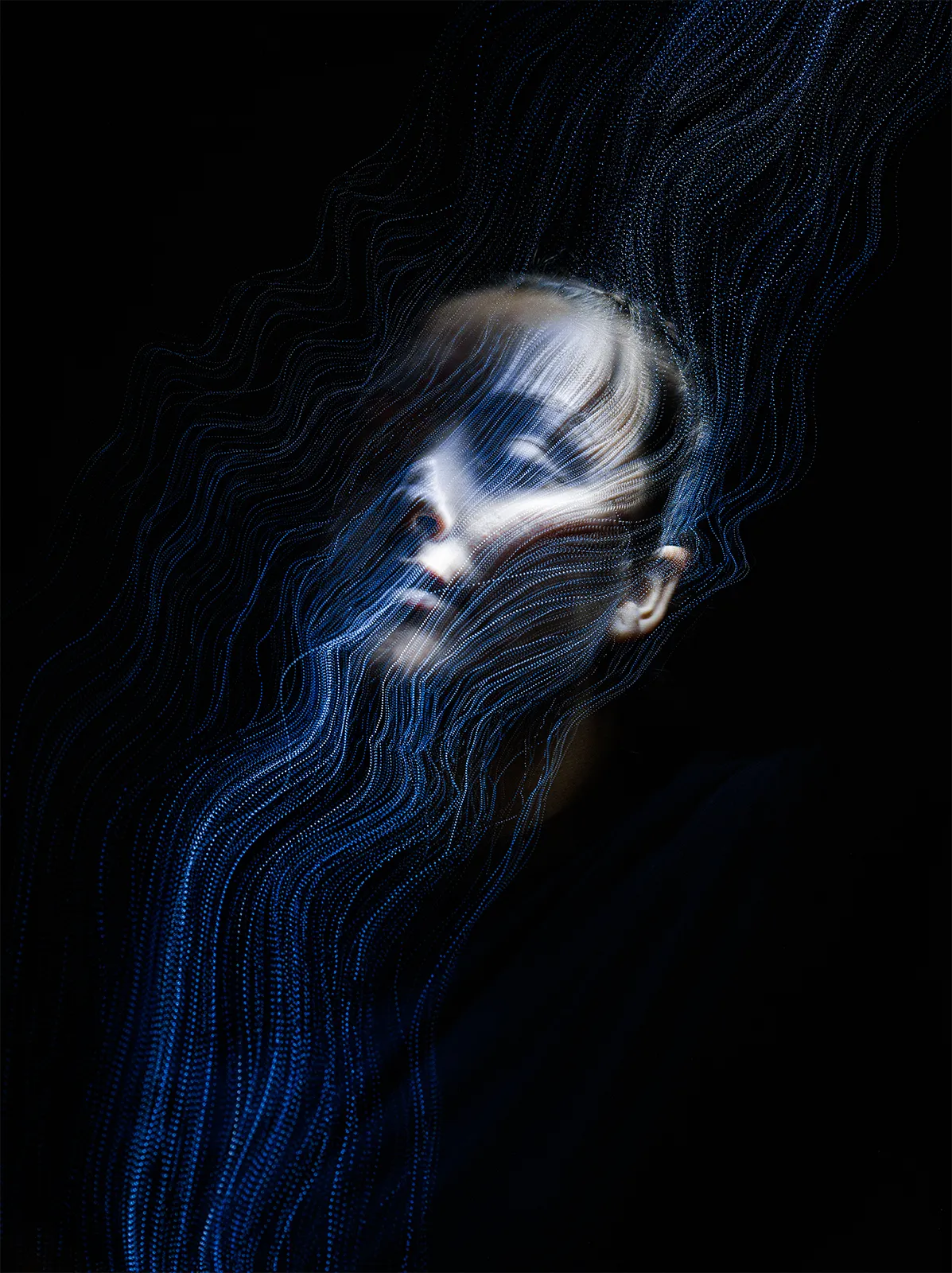 A portrait created with a long exposure and painted light from a fiber optic brush over the subject's face.