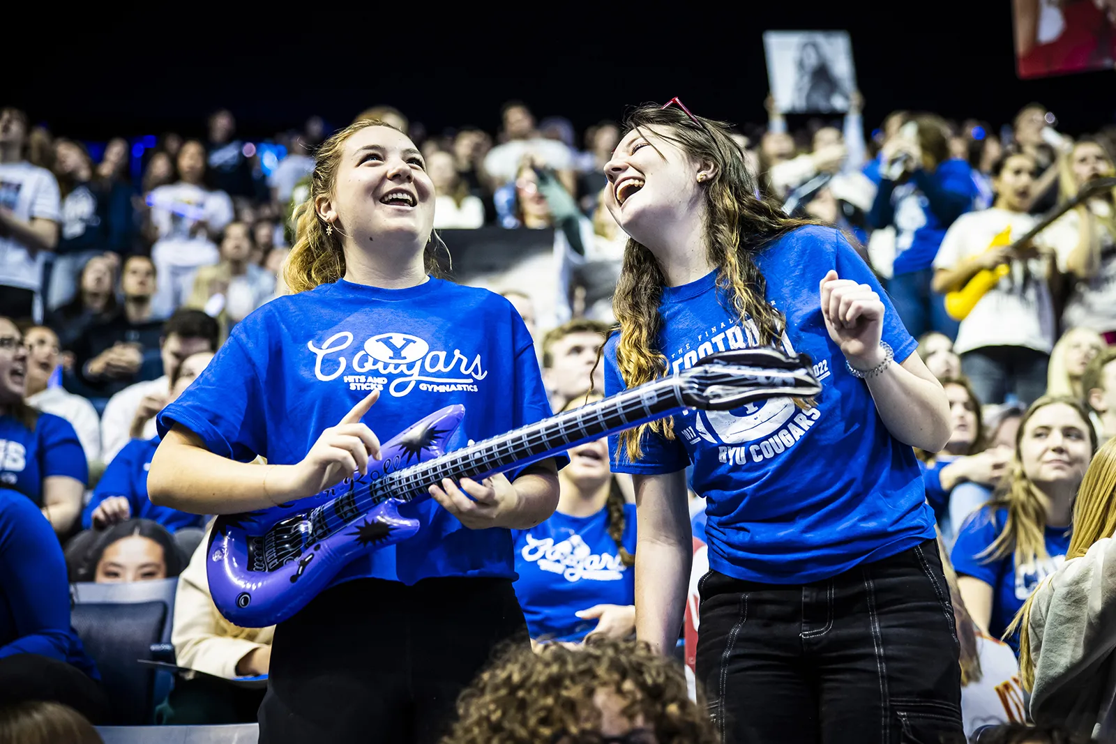 Students experience the atmosphere at a Taylor Swift Eras Tour themed gymnastics meet.