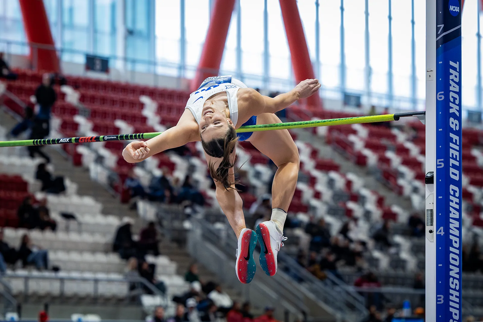 An athlete competes in the high jump at the NCAA Indoor Nationals in Boston.