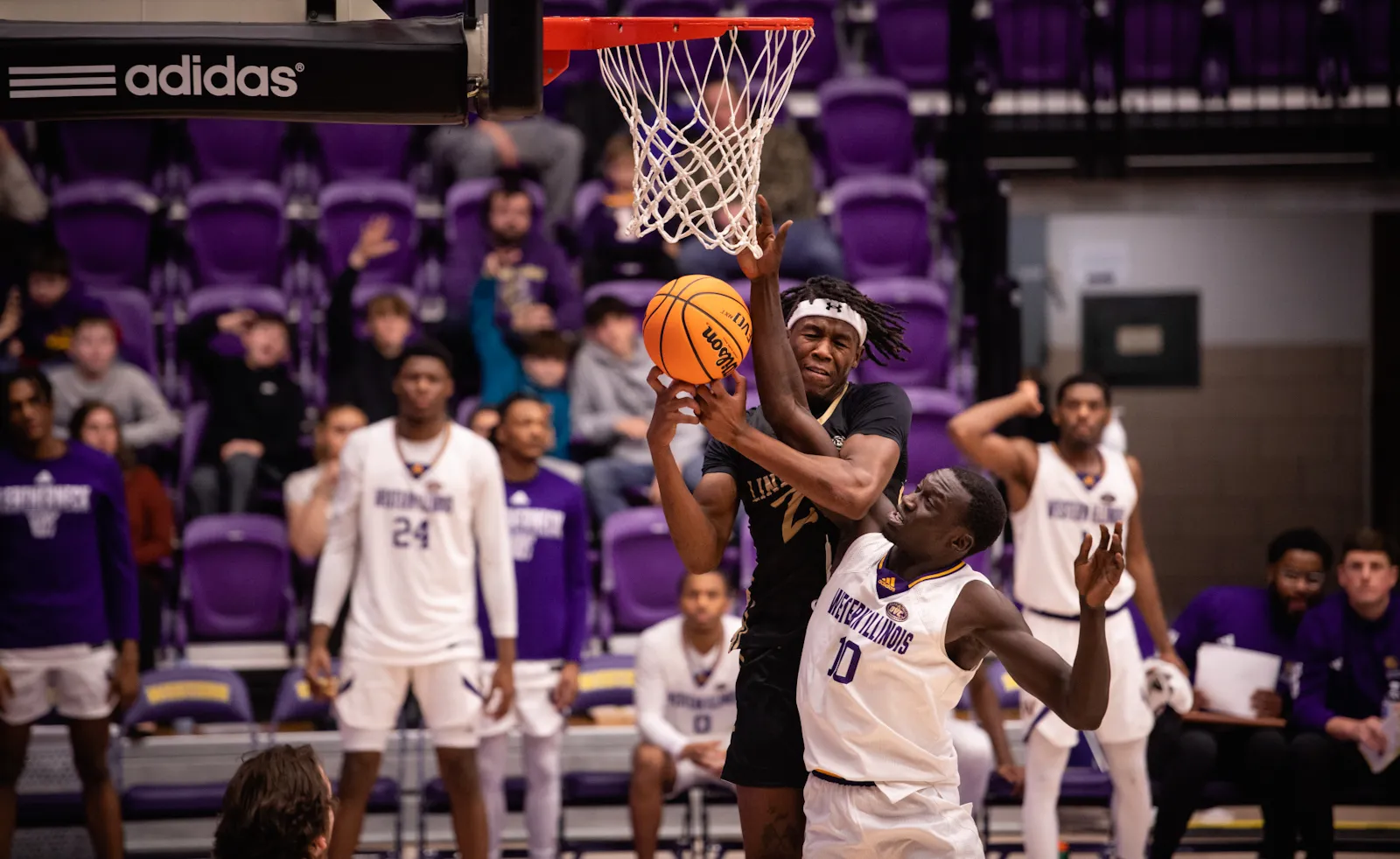 A breathtaking goal shot lights up the men's basketball game, showcasing skill and determination.