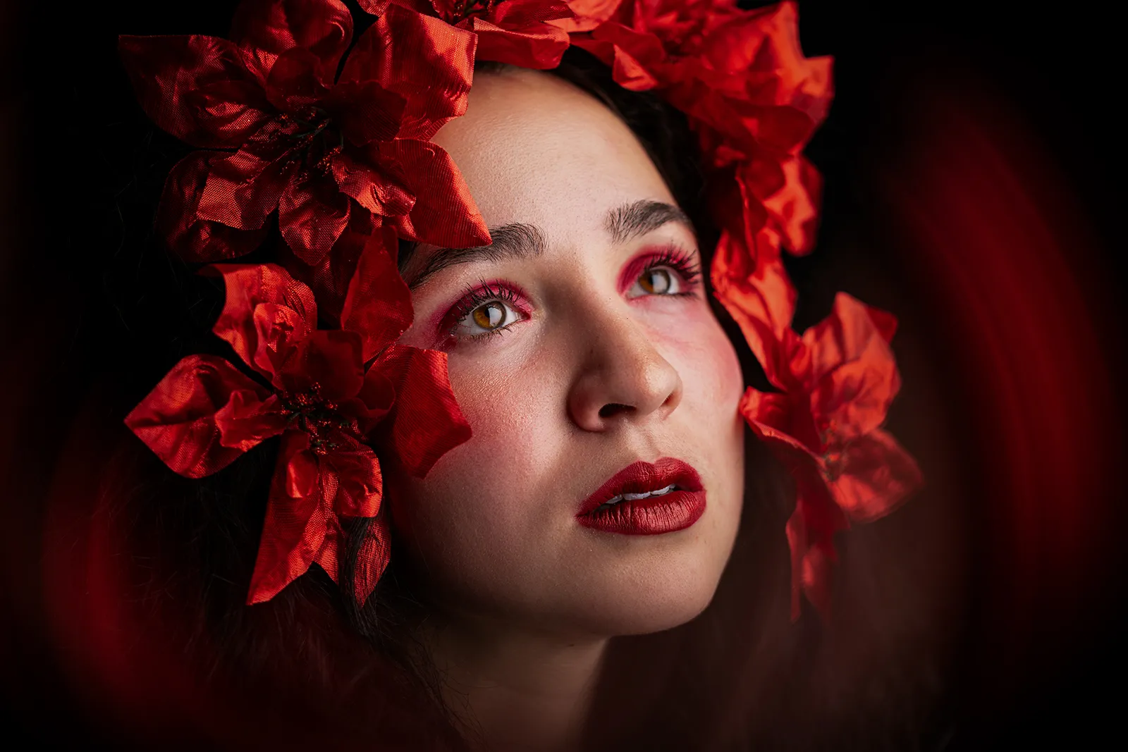 Creative portrait of a student focusing on color theory and the response that red specifically inspires in viewers.