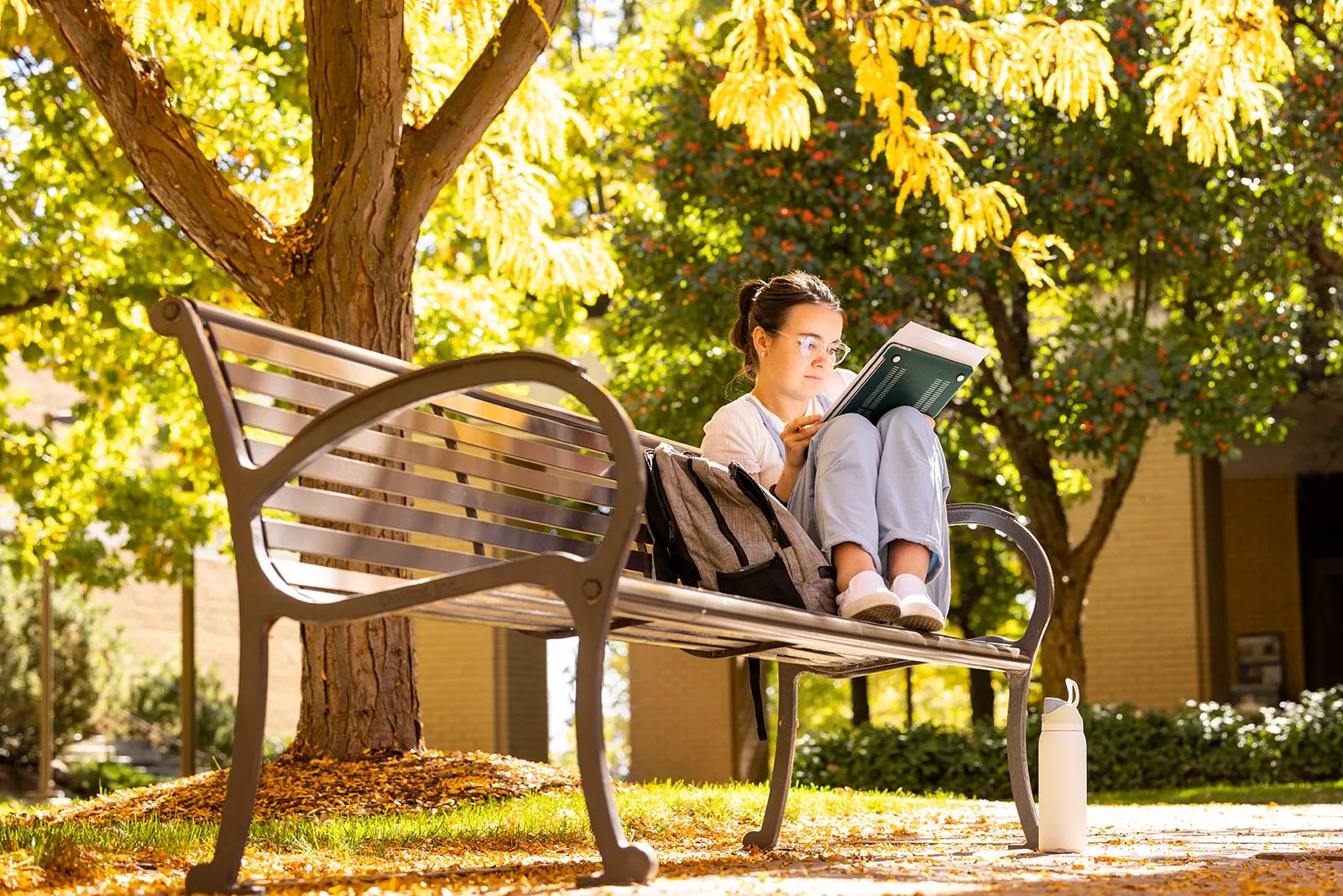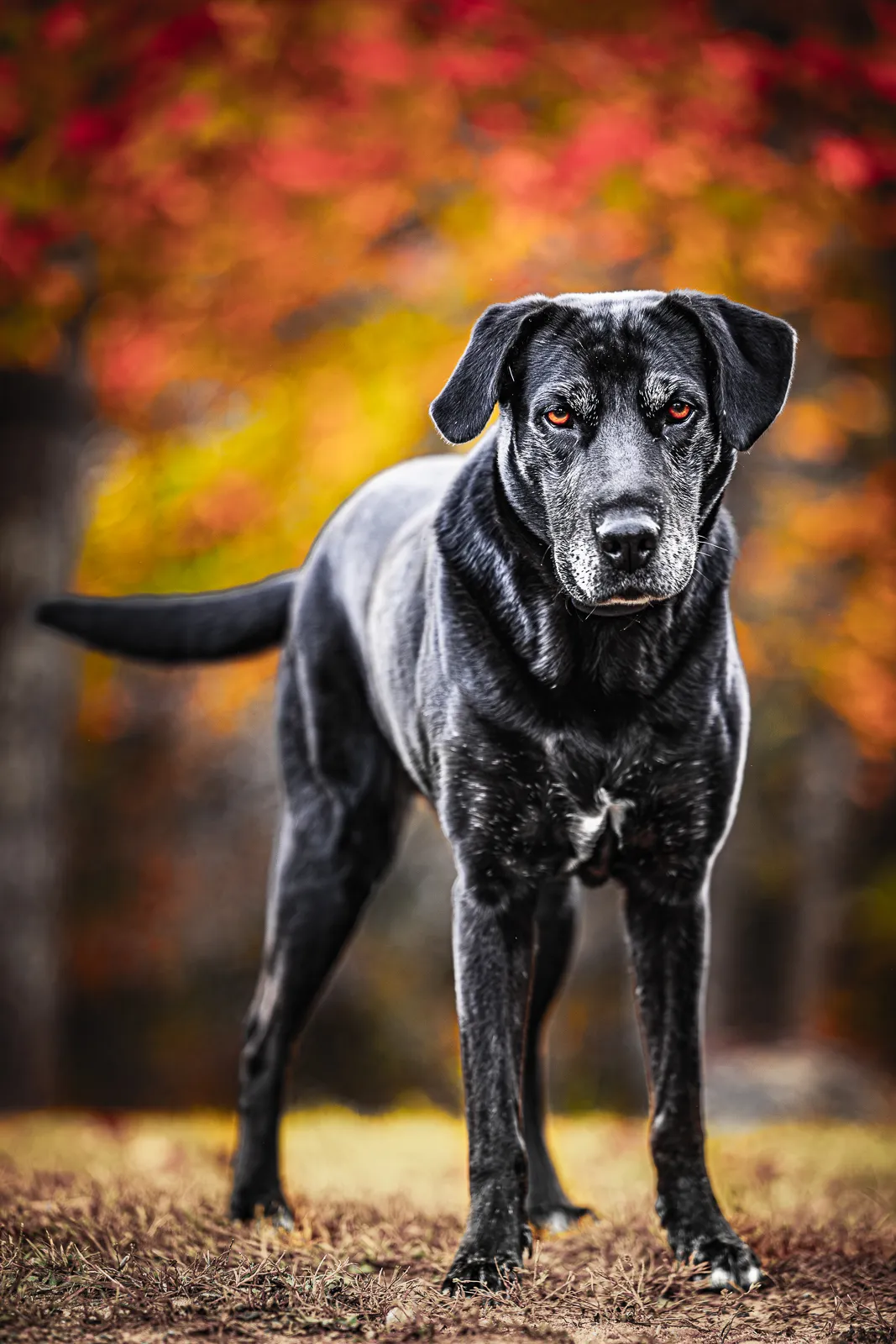 Image of student's pet surrounded by fall colors.