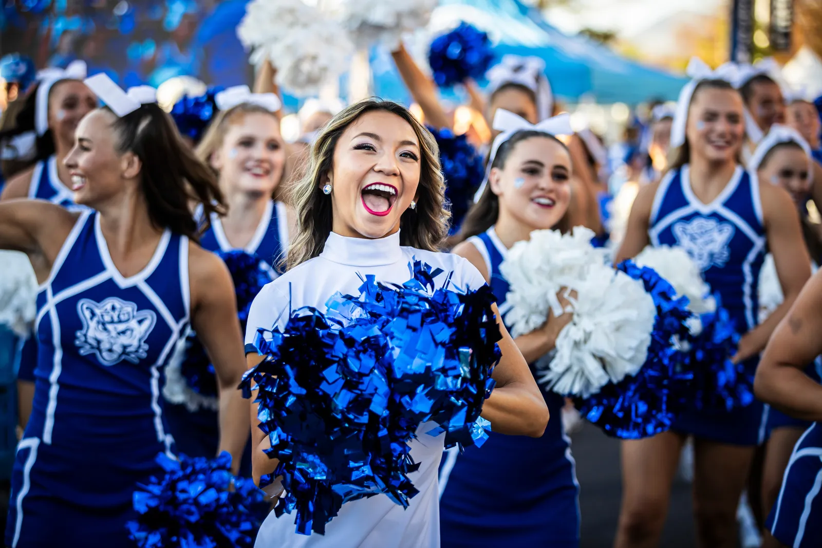 Cheerleaders and Cougarettes hype up the crowd before a homegame.