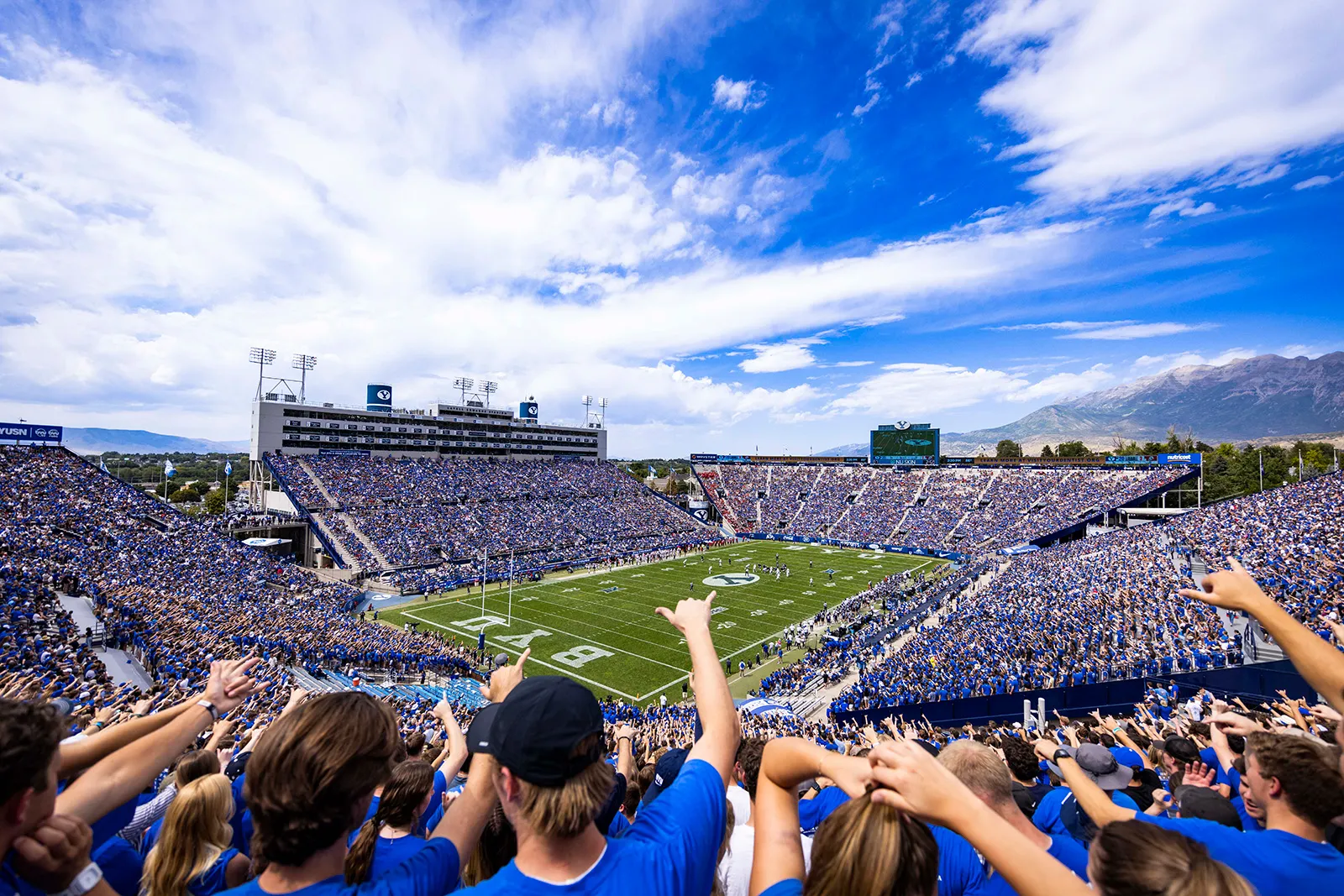 A full house raises their "Y's" in anticipation of a big 3rd down stop by the football team.