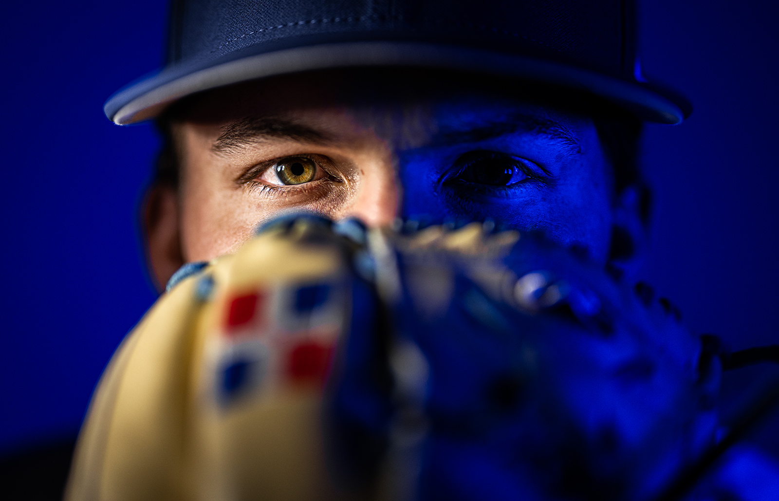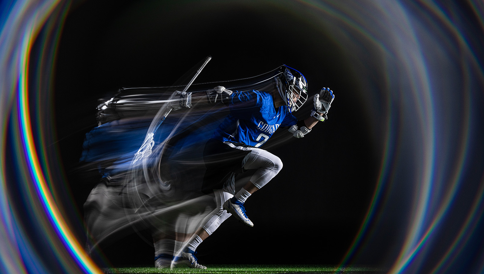 Poster shoot for lacrosse created in studio with a lens filter and strobes.