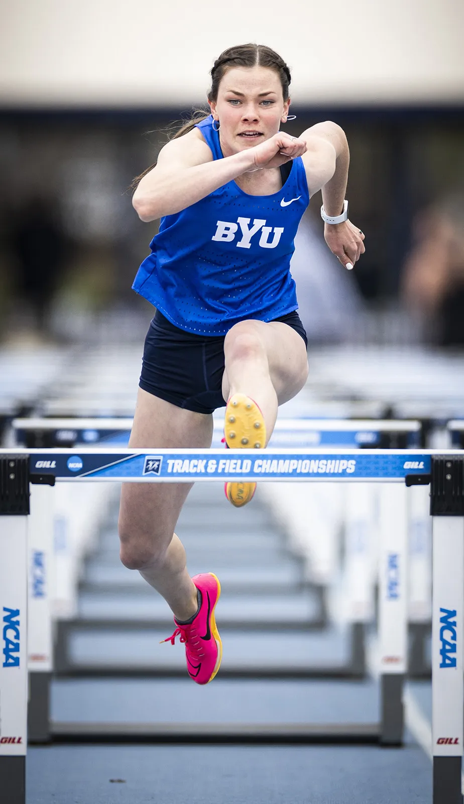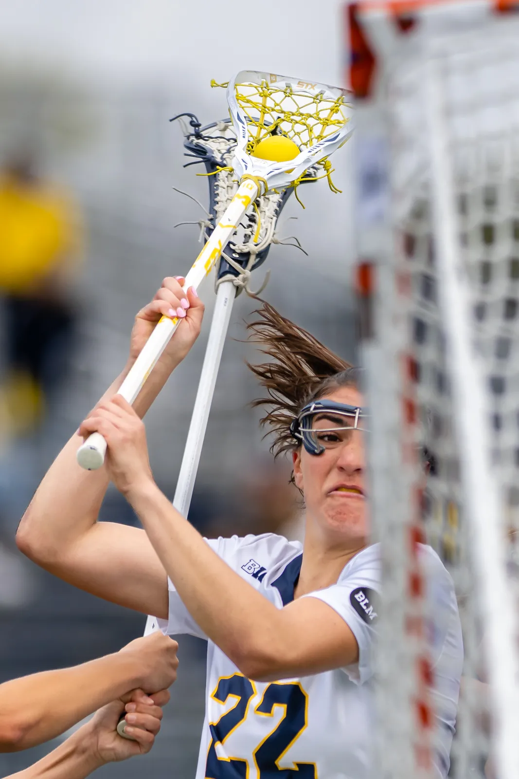 University of Michigan lacrosse player, Lily Montemarano, locks in her focus prior to shooting and scoring a goal in the Big Ten tournament held on her home turf in Ann Arbor, MI.