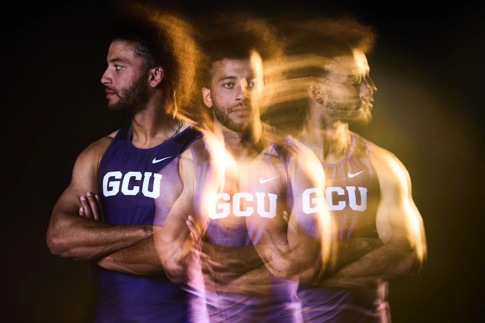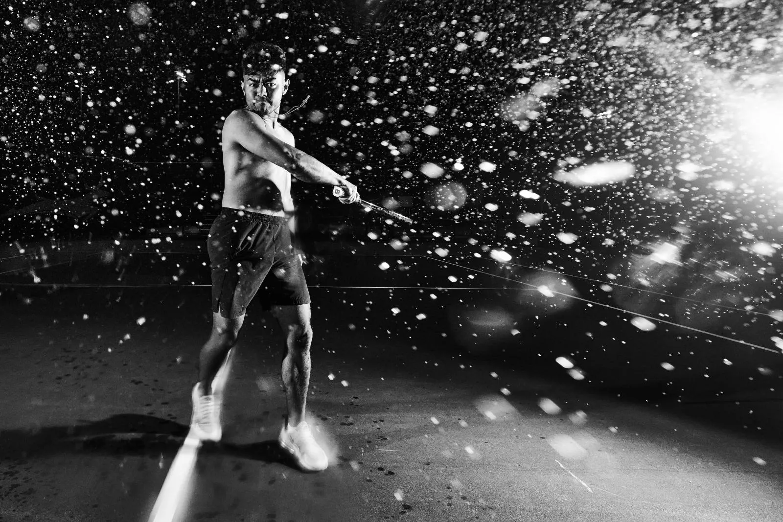This image is a tennis feature image designed to showcase the athlete and his power.