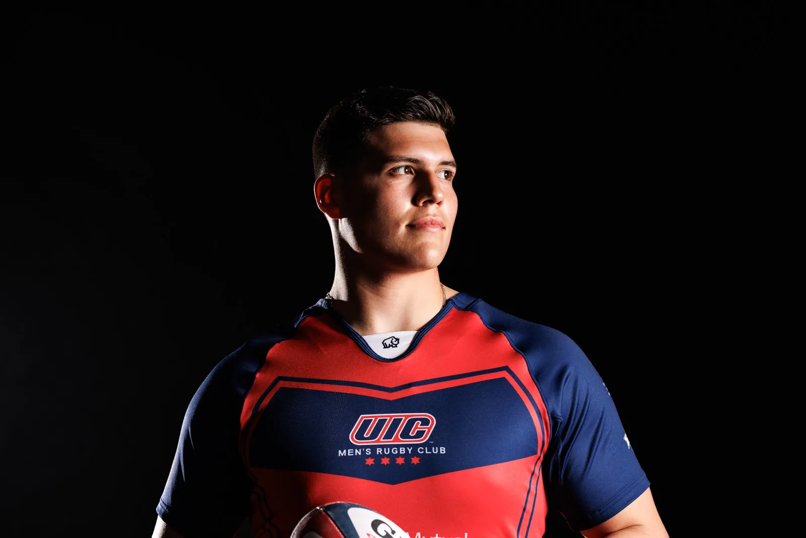 Gerardo, captain and president of the UIC Men's Rugby team, poses for studio portraits not 10 hours after graduating. His devotion to his studies and the team is the reason he was asked to show up to this studio session by his teammates and friends. He intends to attend graduate school at UIC and continue to help the rugby team as a member and coach.