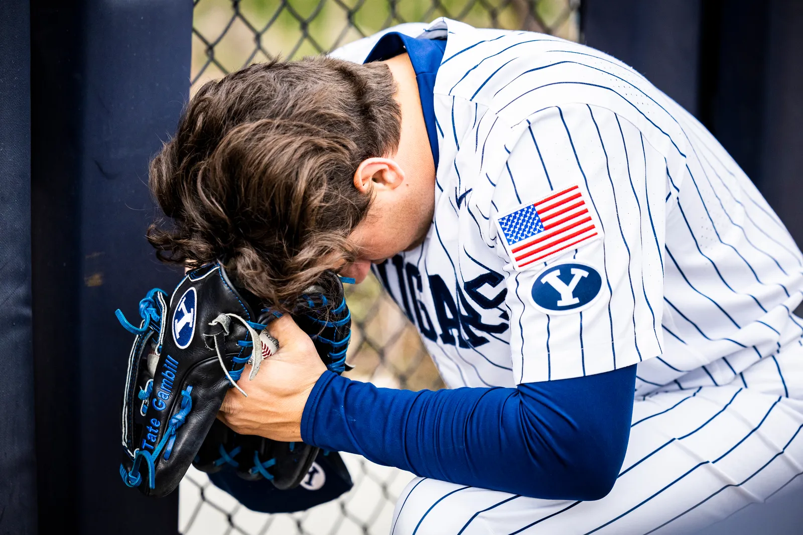 BYU Softball Player Maddie Bejarano looks out onto the field before the game begins.