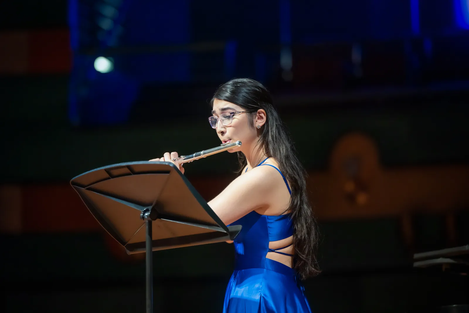 An aspiring flutist performs at TAMUCC's Performing Arts Center at the Presidents Concert, the first ever! She had to go through intense interviews and auditions before being able to take the stage.