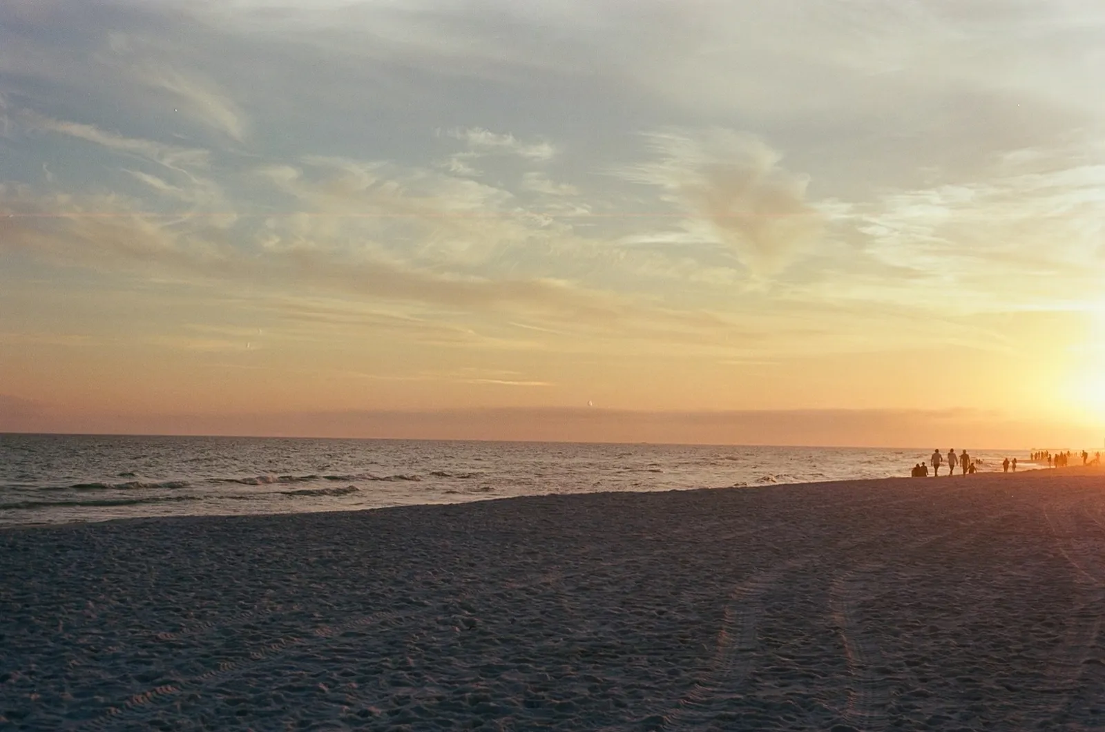 SVU students captured walking on a beach at sunset. Shot on 35MM Ektar 100.