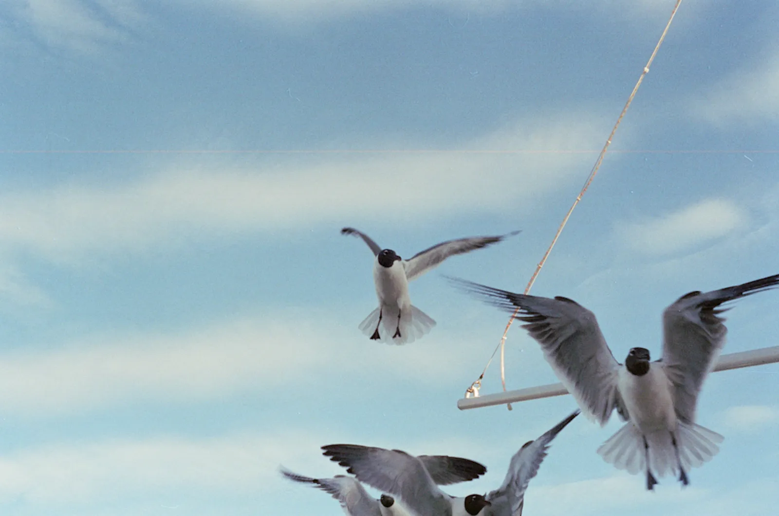A flock of seagulls chased down some potato chips. Shot on 35MM Cinestill 400D