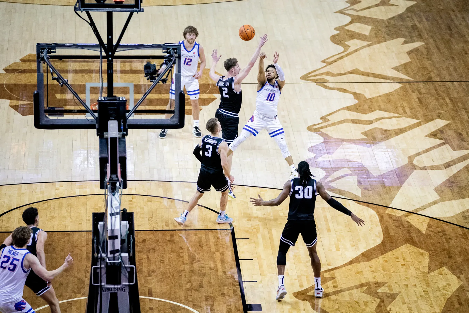 Marcus Shaver releases a shot vs Utah State in the second round of the Mountain West Men's Basketball Championships.