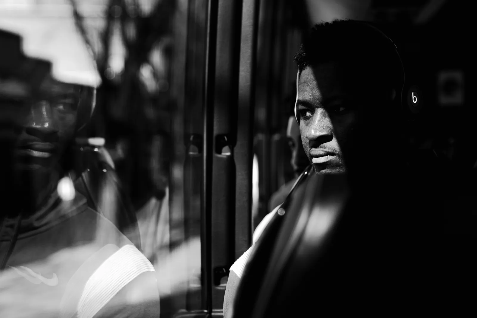 A player looks out the window of the bus before the first round of the NCAA Men's Basketball Tournament.