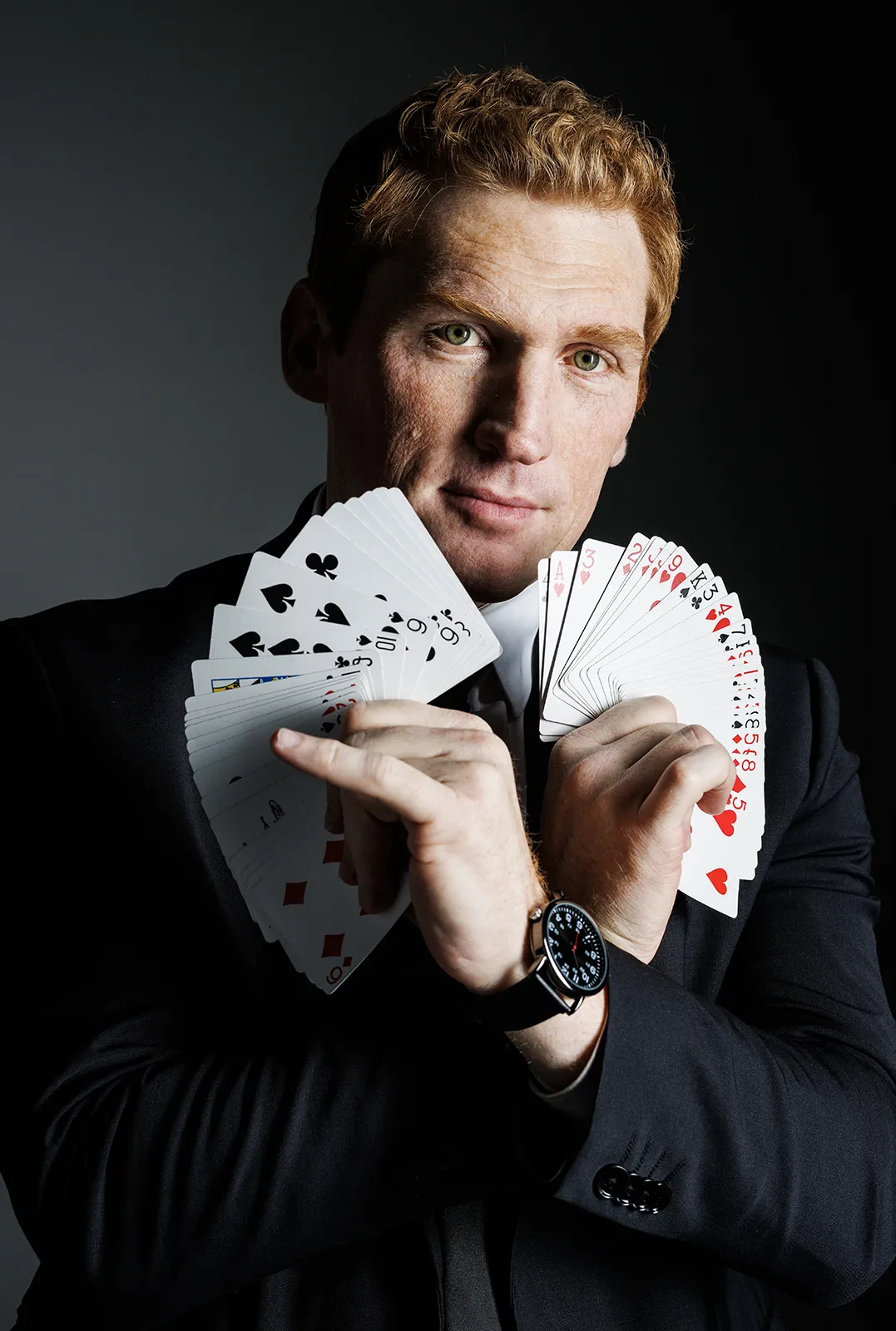 Stuart Edge showing off his magic tricks in studio.