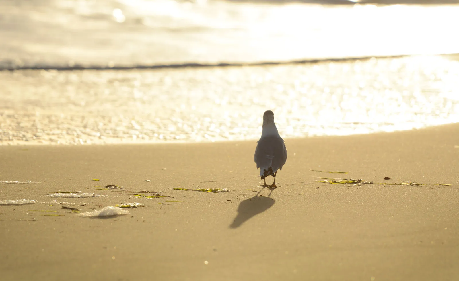 Jerry the seagull contemplates life choices while watching the sunrise at Virginia Beach.