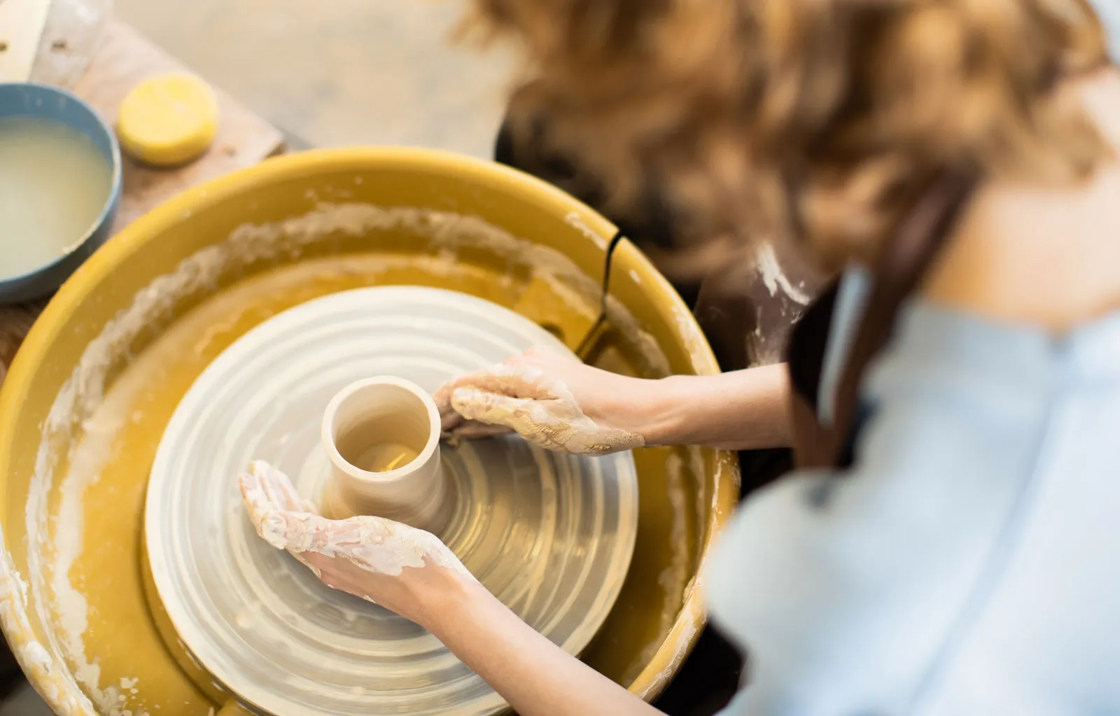 An art student getting familiar with how clay reacts to movement.