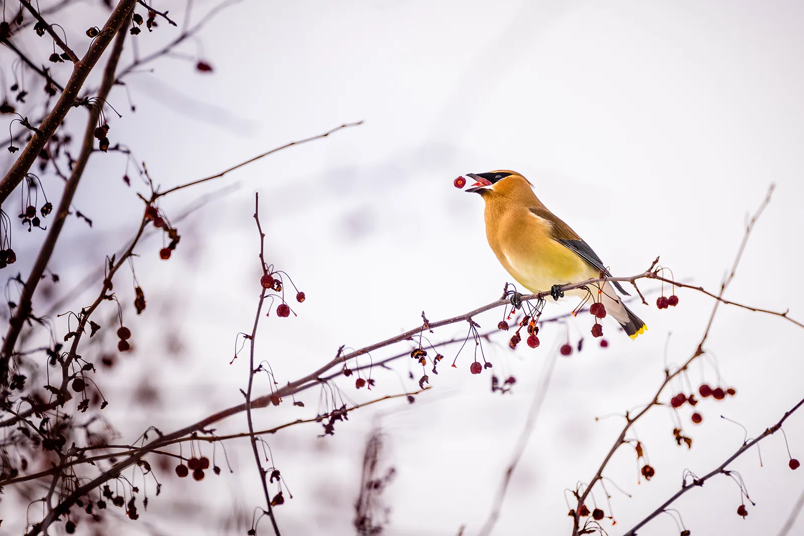 I found some birds on campus throwing berries into the air and then swallowing them whole. I have never seen anything like it before and wanted to capture it.