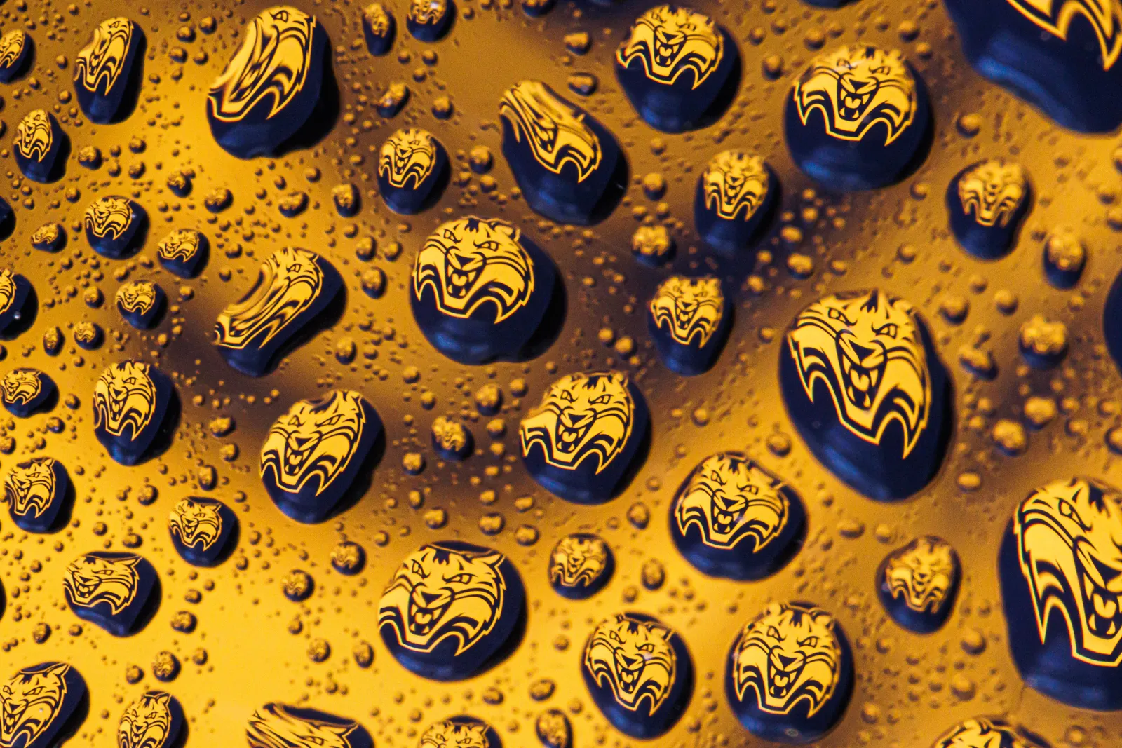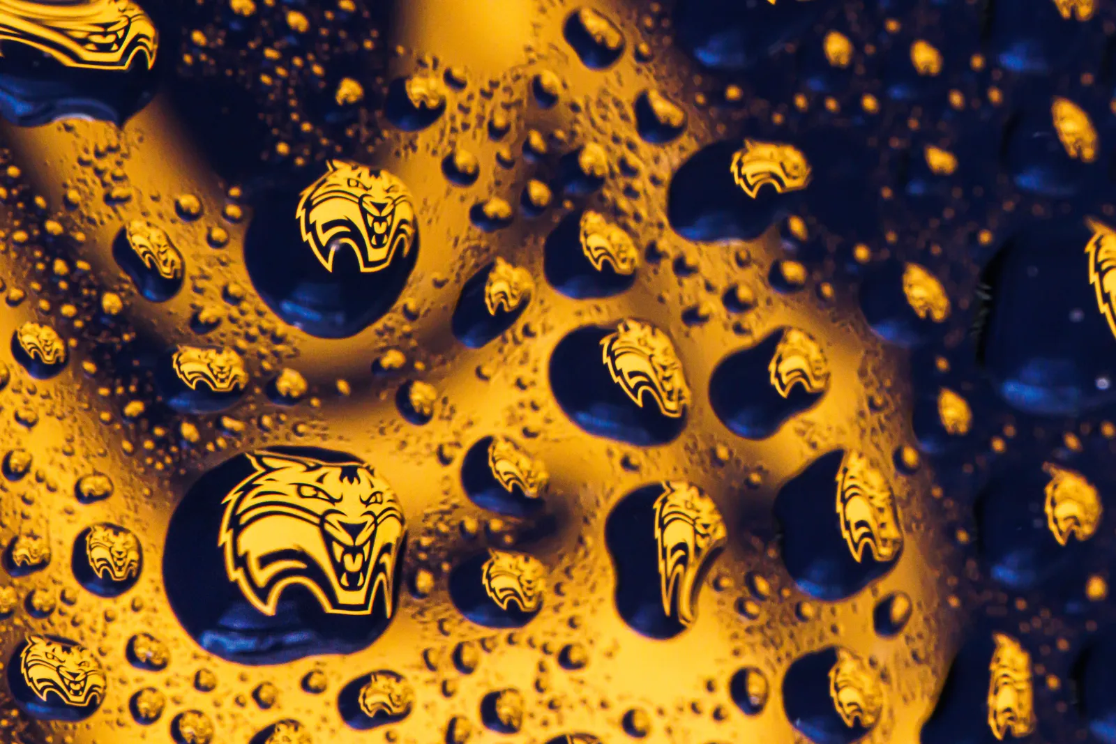 Reflections of the various Quinnipiac University logos on droplets of water taken on Monday, Jan. 9, 2023.