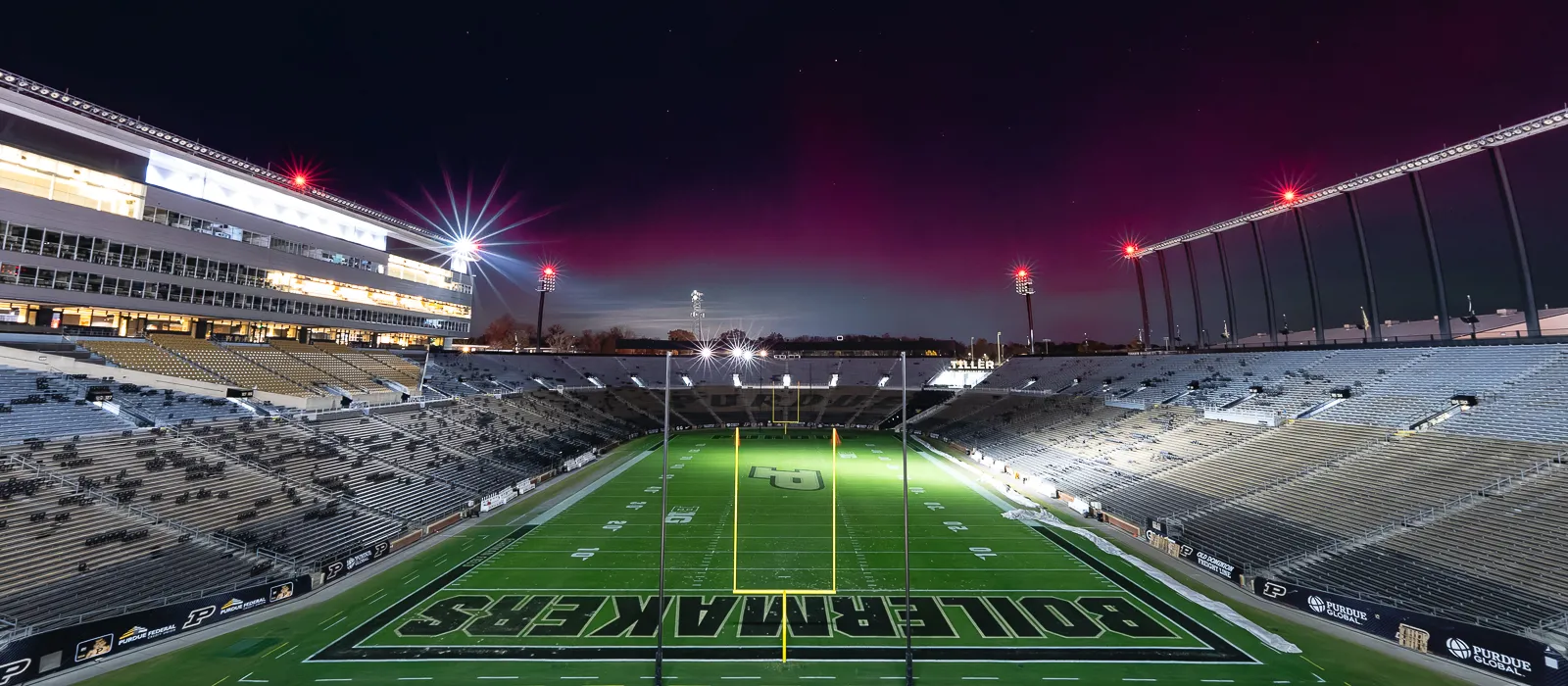 Aurora Borealis sighting captured over Ross-Ade Stadium in West Lafayette, Indiana on November 12th, 2025.
