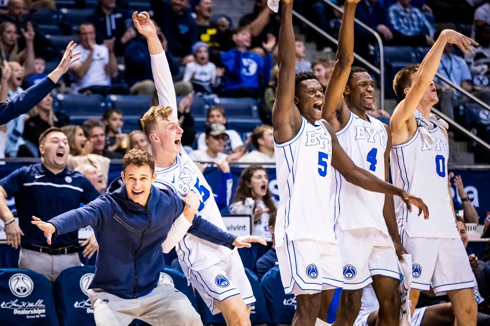 Players on the bench go crazy when a 3-point shot is made during a crucial part of the game.