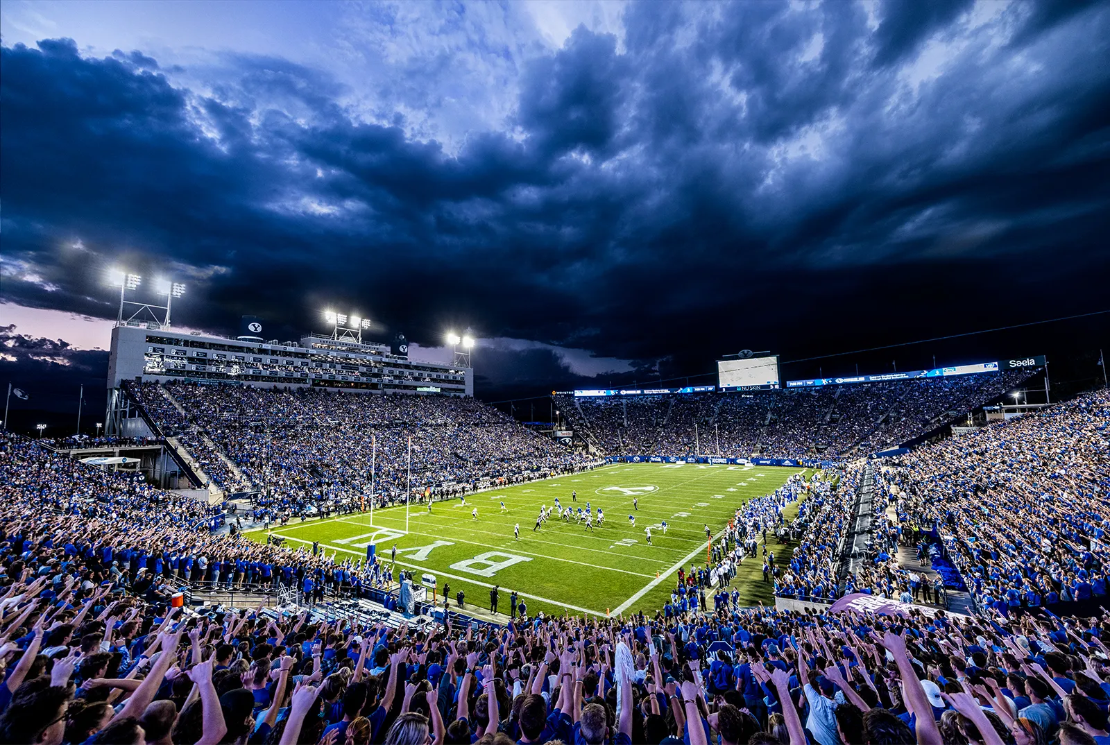 This football game started earlier in the day so I was able to capture this breathtaking blue sunset that hung over the crowd during the first half.
