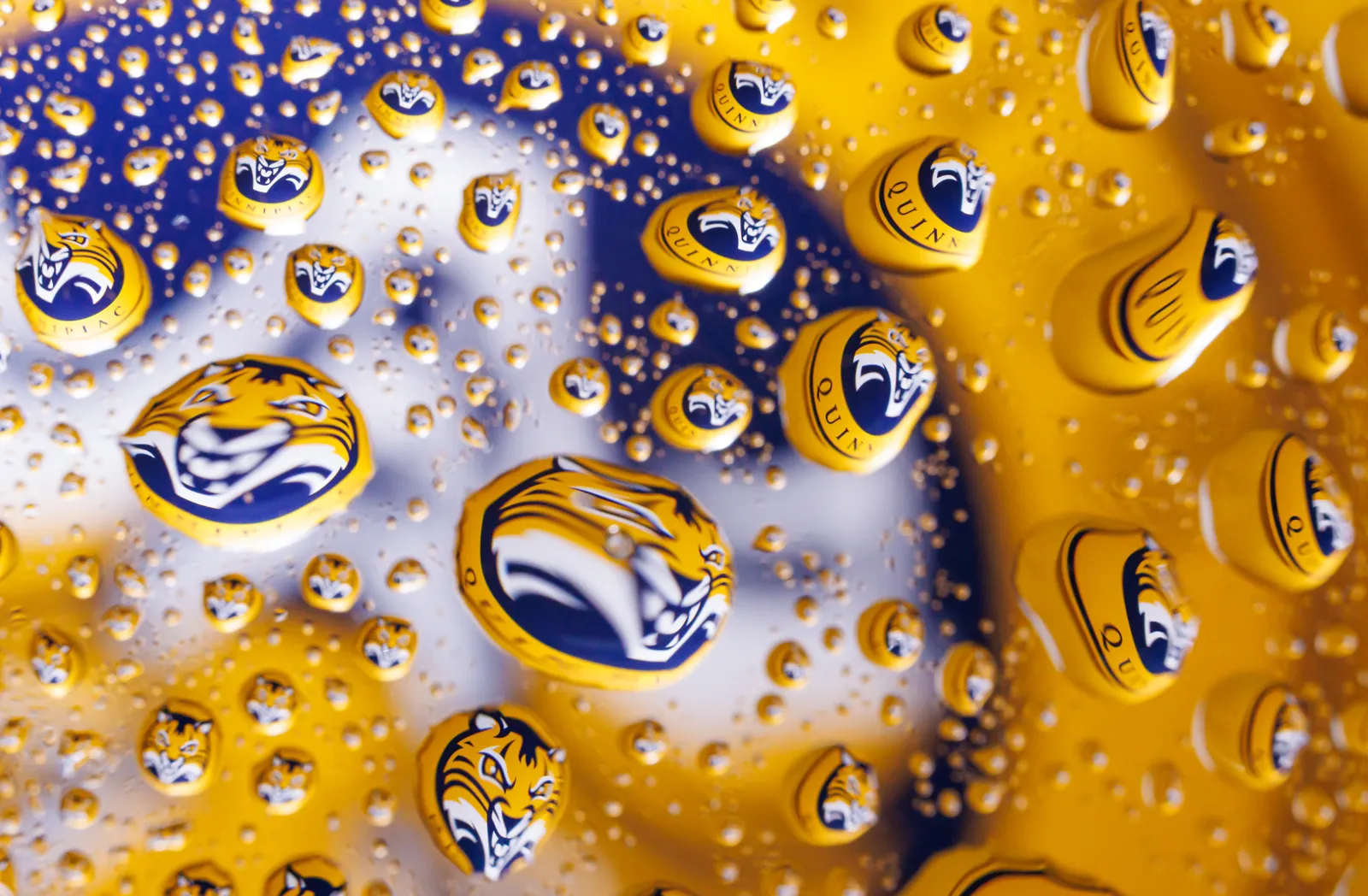 Reflections of the Quinnipiac bobcat on droplets of water taken on January 5, 2022.
