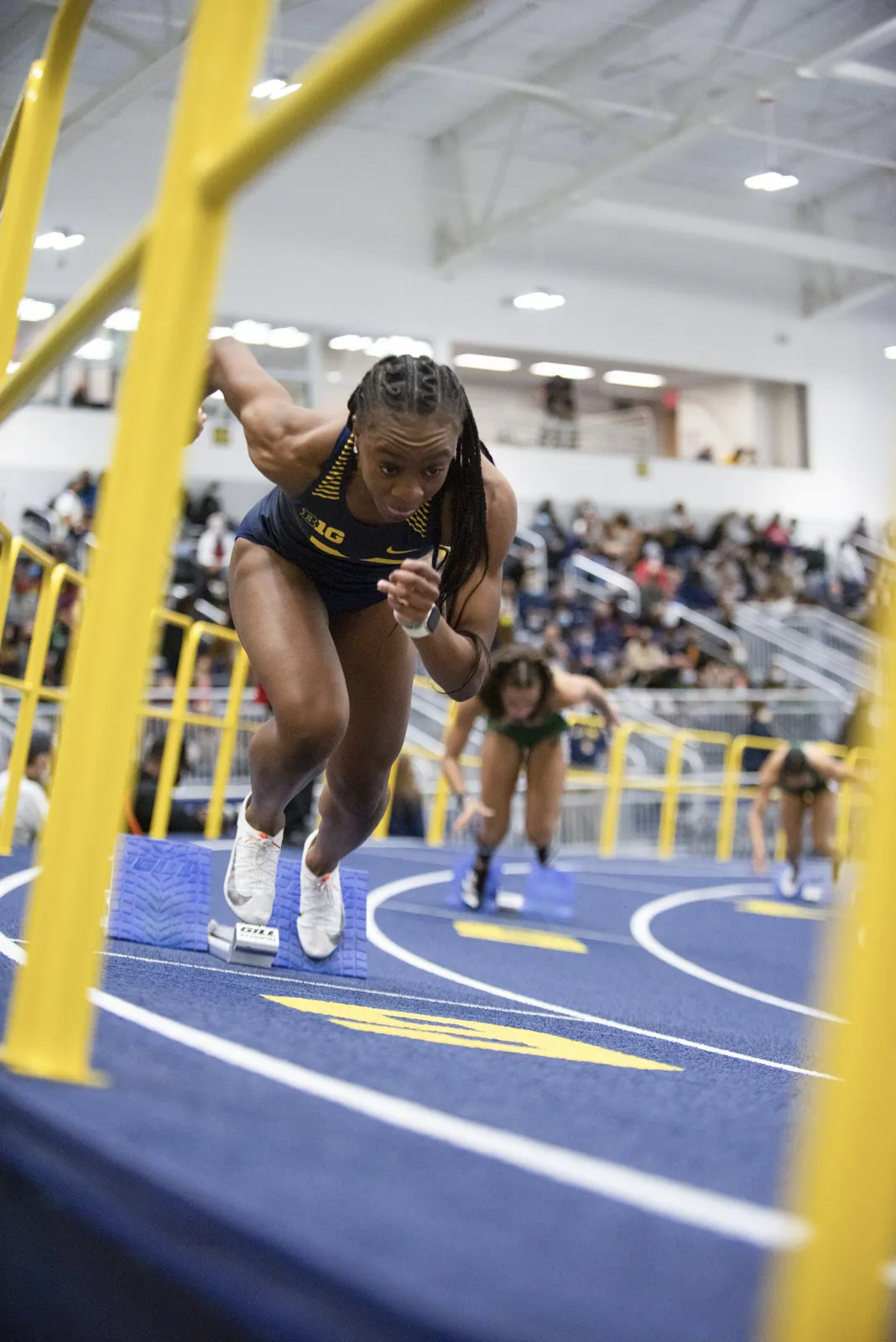Michigan Track and Field athlete on her mark before a race at the Varsity Track Center Jan. 22, 2022.